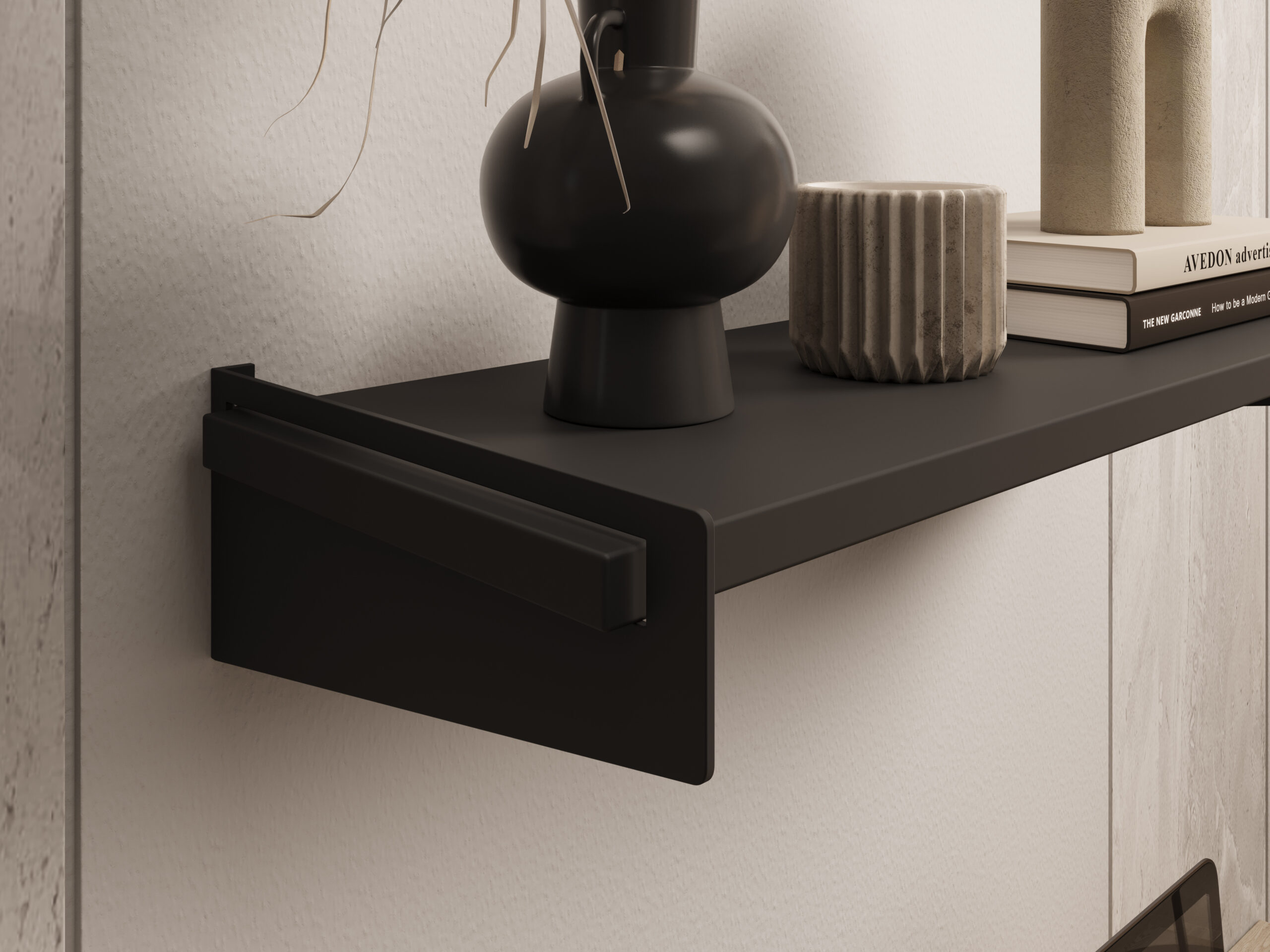 A lebegő polc hatása a letisztultság: a rögzítés nem látszik, a polc „úszik” a falon. Modern terekben, minimalista nappalikban és skandináv stílusban különösen népszerű. A hangsúly a tiszta vonalakon és az egyszerű formán van.