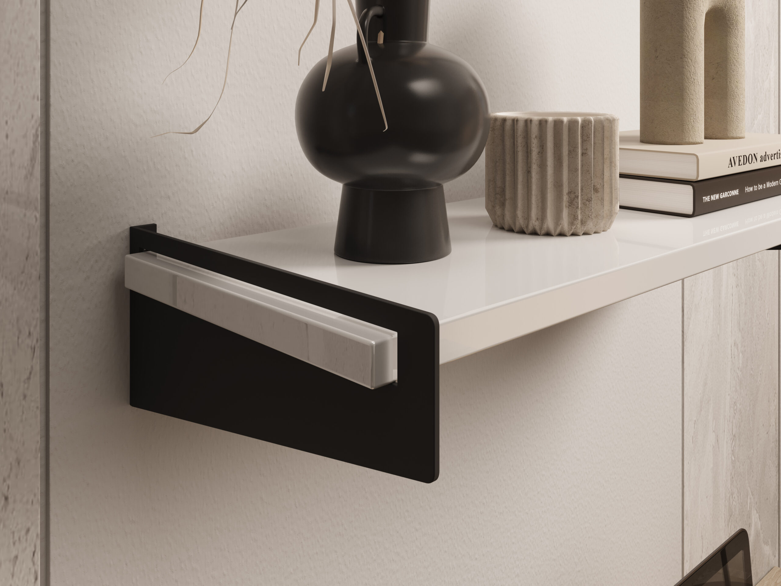 A lebegő polc hatása a letisztultság: a rögzítés nem látszik, a polc „úszik” a falon. Modern terekben, minimalista nappalikban és skandináv stílusban különösen népszerű. A hangsúly a tiszta vonalakon és az egyszerű formán van.