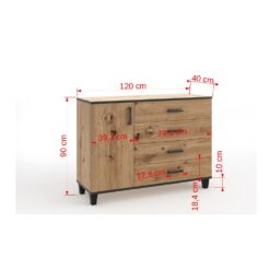 Leírás: A POLA gyűjtemény komódja olyan bútor, amelyet nappaliba, hálószobába vagy irodába terveztek. A természetes fa hatását hangsúlyozzák a fekete kiegészítők és betétek. A modern stílusban megvalósított kialakítás biztosan felhívja magára a figyelmet. Egyszerű, mégis funkcionális. Arra ösztönözzük Önt, hogy megismerje a POLA gyűjtemény többi termékét is.