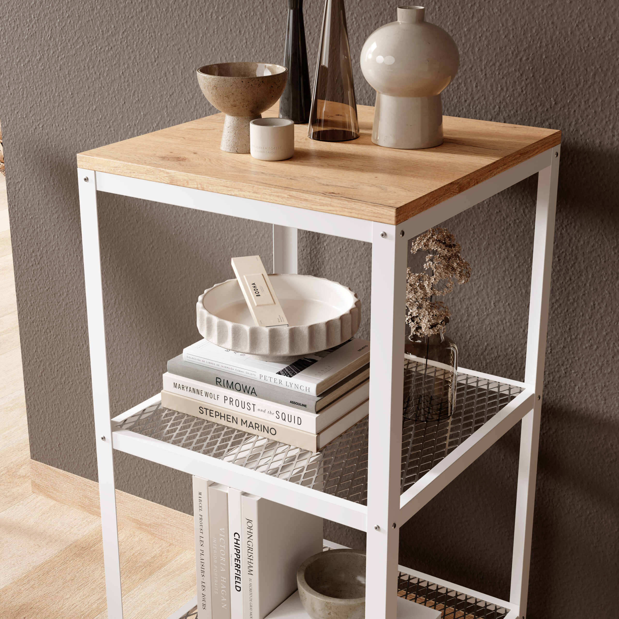 Ha modern/loft stílust szeretsz: fém vázas, fa hatású polcos kialakítás remek választás.