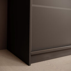 A tolóajtó-rendszernél a sín és a futómechanika kulcsfontosságú. A jó csúszás élménye nem csak „kényelmi extra”: ha simán fut az ajtó, kevésbé kopik, ritkábban szorul be, és hosszabb ideig marad csendes a használat. Ha kétajtós megoldást választasz, fontos, hogy a belső zónák elérését a frontok mozgása ne akadályozza – ezért praktikus a jól osztott belső tér.