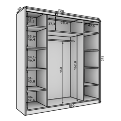 Leírás: A Sonic 200 tükrös tolóajtós szekrény egy modern és funkcionális bútordarab, amely ideális hálószobába, gardróbba vagy előszobába. Tolóajtói megkönnyítik a mindennapi használatot, és segítenek helyet megtakarítani a helyiségben. A középen elhelyezett nagy tükör nemcsak optikailag növeli a teret, hanem praktikus szerepet is betölt: megkönnyíti a reggeli készülődést és az indulás előtti utolsó ellenőrzést. A Sonic szekrény az esztétikumot és a praktikumot ötvözi, tágas belső terében polcok és ruhatartó rúd található, így kiváló választás a modern enteriőrökbe