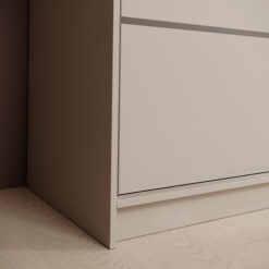 A tolóajtó-rendszernél a sín és a futómechanika kulcsfontosságú. A jó csúszás élménye nem csak „kényelmi extra”: ha simán fut az ajtó, kevésbé kopik, ritkábban szorul be, és hosszabb ideig marad csendes a használat. Ha kétajtós megoldást választasz, fontos, hogy a belső zónák elérését a frontok mozgása ne akadályozza – ezért praktikus a jól osztott belső tér.