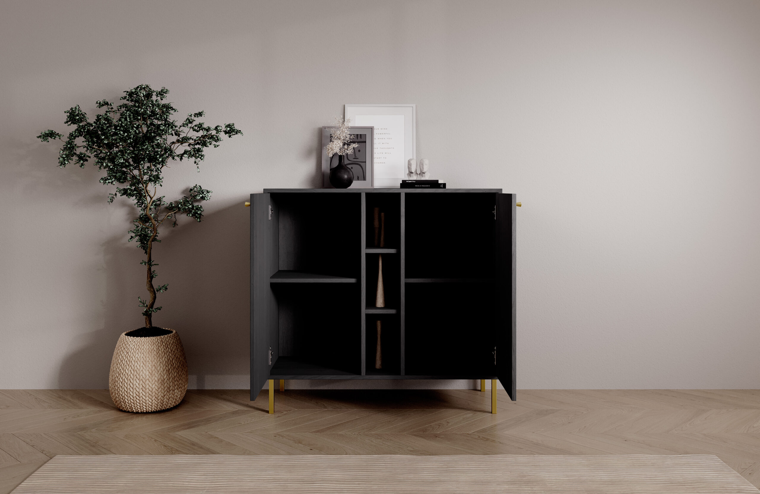 Leírás: A Tili System komód egy modern bútordarab, amely átgondolt színeinek és elegáns kialakításának köszönhetően tökéletesen illeszkedik a legkülönbözőbb enteriőrökbe. Három színváltozatban kapható: **A komód a funkcionalitás és az esztétikum harmonikus kombinációja.Minden színváltozatot gondosan megterveztünk, hogy kiemelje a belső tér egyedi karakterét. A **fekete** kifinomult, modern megjelenést kölcsönöz a komódnak, amely ideális a minimalista és elegáns terekbe. A **homokbézs** melegséget és finomságot kölcsönöz, tökéletesen illeszkedik a dekoráció világos, természetes elemeihez. Másrészt az **eukaliptusz** a természet által inspirált árnyalat, amely frissességet és könnyedséget visz a belső térbe, ideális a modern és a klasszikusabb elrendezéshez egyaránt.