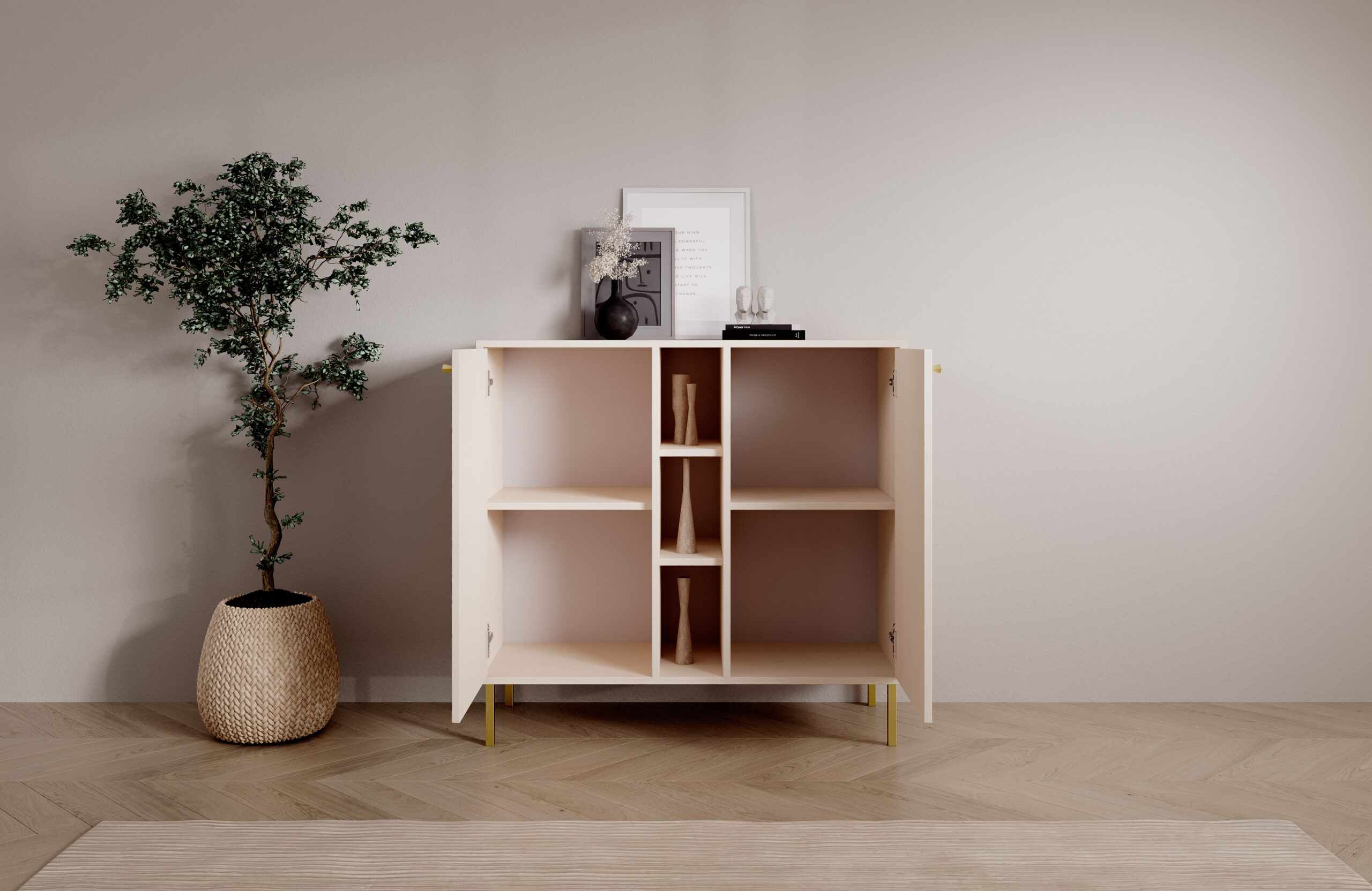 Leírás: A Tili System komód egy modern bútordarab, amely átgondolt színeinek és elegáns kialakításának köszönhetően tökéletesen illeszkedik a legkülönbözőbb enteriőrökbe. Három színváltozatban kapható: **A komód a funkcionalitás és az esztétikum harmonikus kombinációja.Minden színváltozatot gondosan megterveztünk, hogy kiemelje a belső tér egyedi karakterét. A **fekete** kifinomult, modern megjelenést kölcsönöz a komódnak, amely ideális a minimalista és elegáns terekbe. A **homokbézs** melegséget és finomságot kölcsönöz, tökéletesen illeszkedik a dekoráció világos, természetes elemeihez. Másrészt az **eukaliptusz** a természet által inspirált árnyalat, amely frissességet és könnyedséget visz a belső térbe, ideális a modern és a klasszikusabb elrendezéshez egyaránt.
