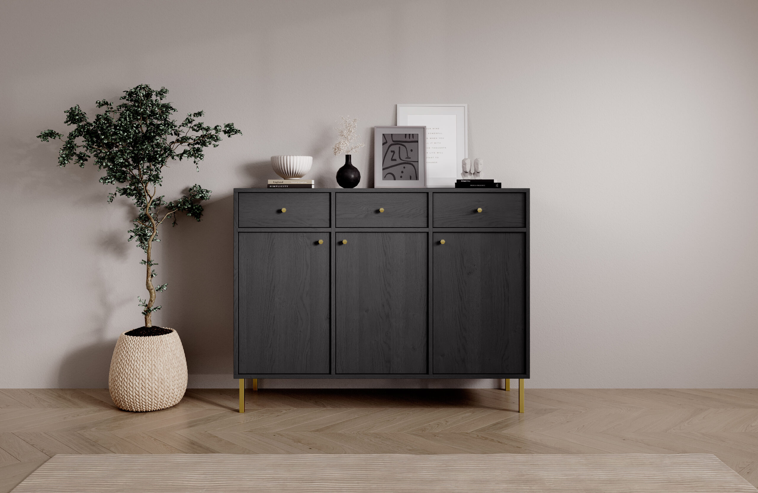 Leírás: A Tili System komód egy modern bútordarab, amely átgondolt színeinek és elegáns kialakításának köszönhetően tökéletesen illeszkedik a legkülönbözőbb enteriőrökbe. Három színváltozatban kapható: **A komód a funkcionalitás és az esztétikum harmonikus kombinációja.Minden színváltozatot gondosan megterveztünk, hogy kiemelje a belső tér egyedi karakterét. A **fekete** kifinomult, modern megjelenést kölcsönöz a komódnak, amely ideális a minimalista és elegáns terekbe. A **homokbézs** melegséget és finomságot kölcsönöz, tökéletesen illeszkedik a dekoráció világos, természetes elemeihez. Másrészt az **eukaliptusz** a természet által inspirált árnyalat, amely frissességet és könnyedséget visz a belső térbe, ideális a modern és a klasszikusabb elrendezéshez egyaránt.