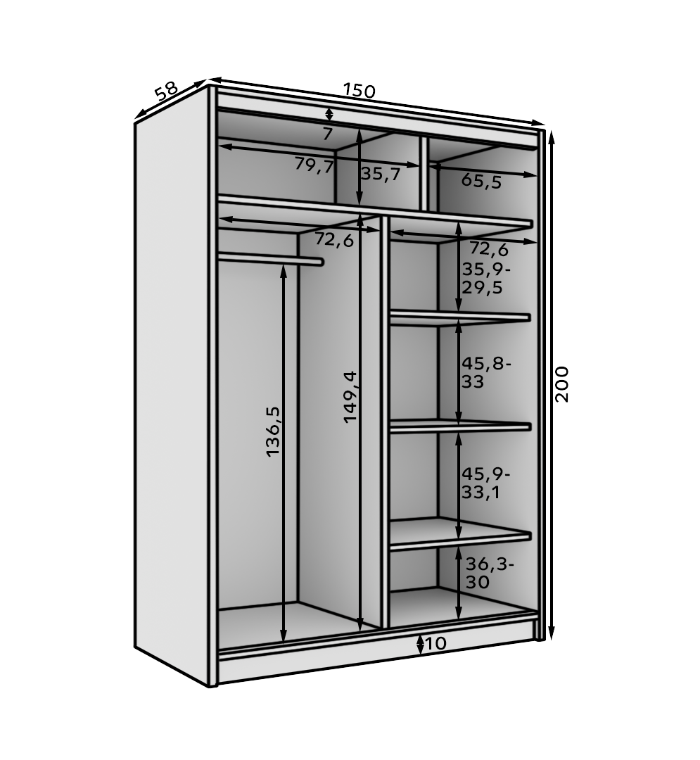 A megfelelő tolóajtós gardrób kiválasztásának első lépése a pontos mérés. Nem csak a fal szélességét érdemes lemérni, hanem a belmagasságot és a közlekedősávot is. A tolóajtós front miatt ugyan nem kell ajtónyitási ívvel számolni, de fontos, hogy a szekrény előtt kényelmesen lehessen állni, és legyen elég hely a rendezéshez, pakoláshoz.