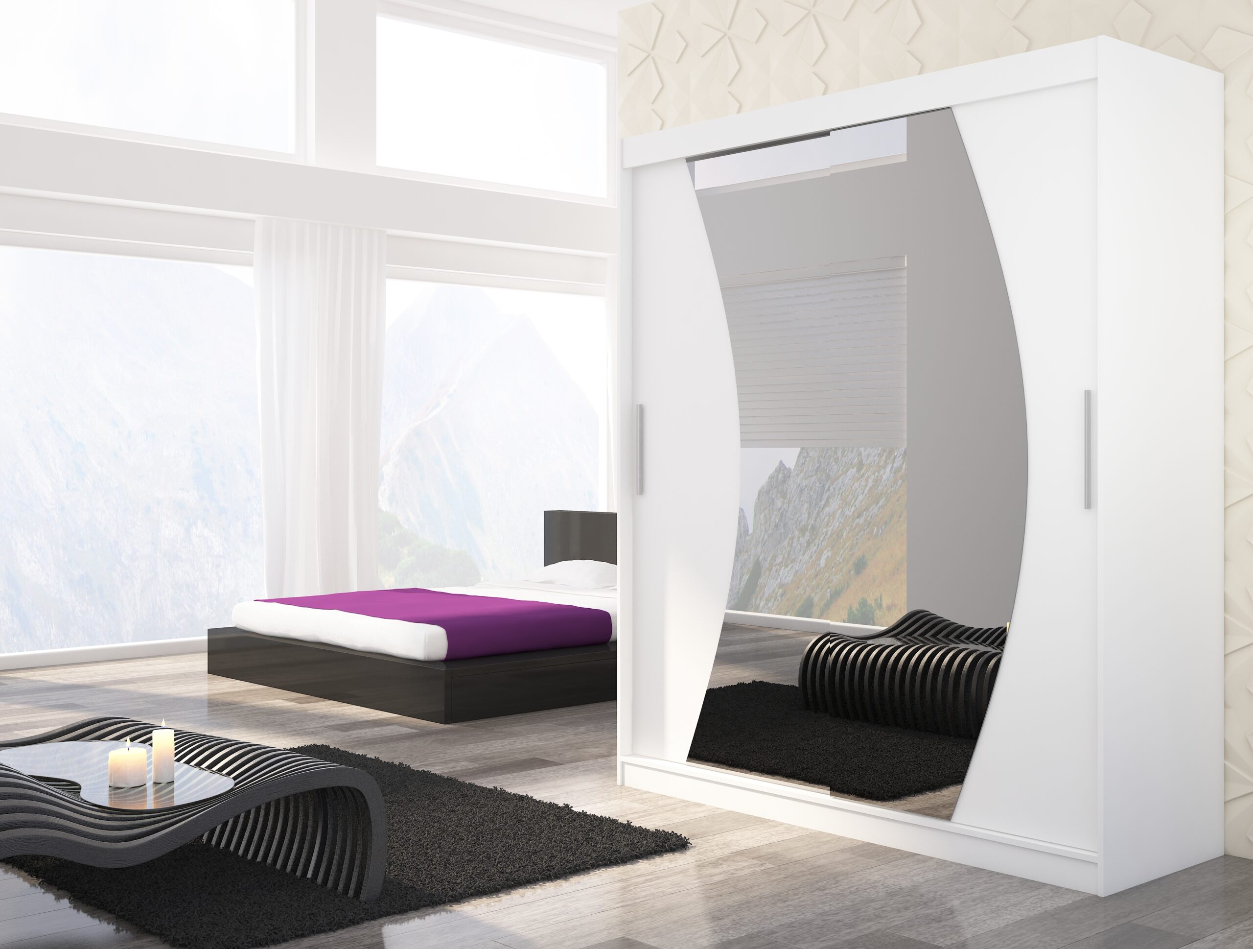 Tolóajtós gardrób LED tükrös tolóajtós szekrény DIEGO 250 – Fehér