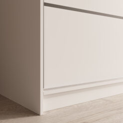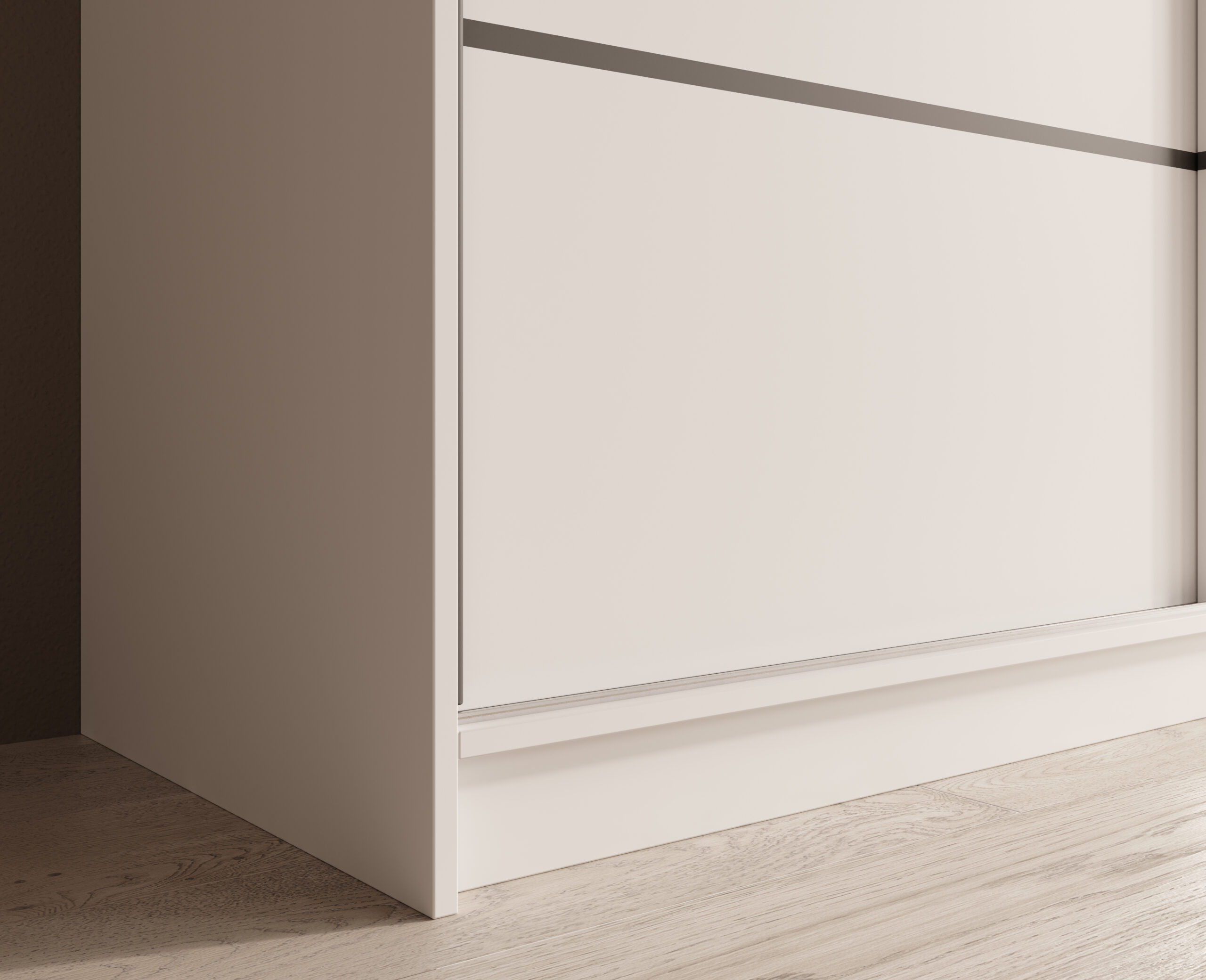 A tolóajtó-rendszernél a sín és a futómechanika kulcsfontosságú. A jó csúszás élménye nem csak „kényelmi extra”: ha simán fut az ajtó, kevésbé kopik, ritkábban szorul be, és hosszabb ideig marad csendes a használat. Ha kétajtós megoldást választasz, fontos, hogy a belső zónák elérését a frontok mozgása ne akadályozza – ezért praktikus a jól osztott belső tér.