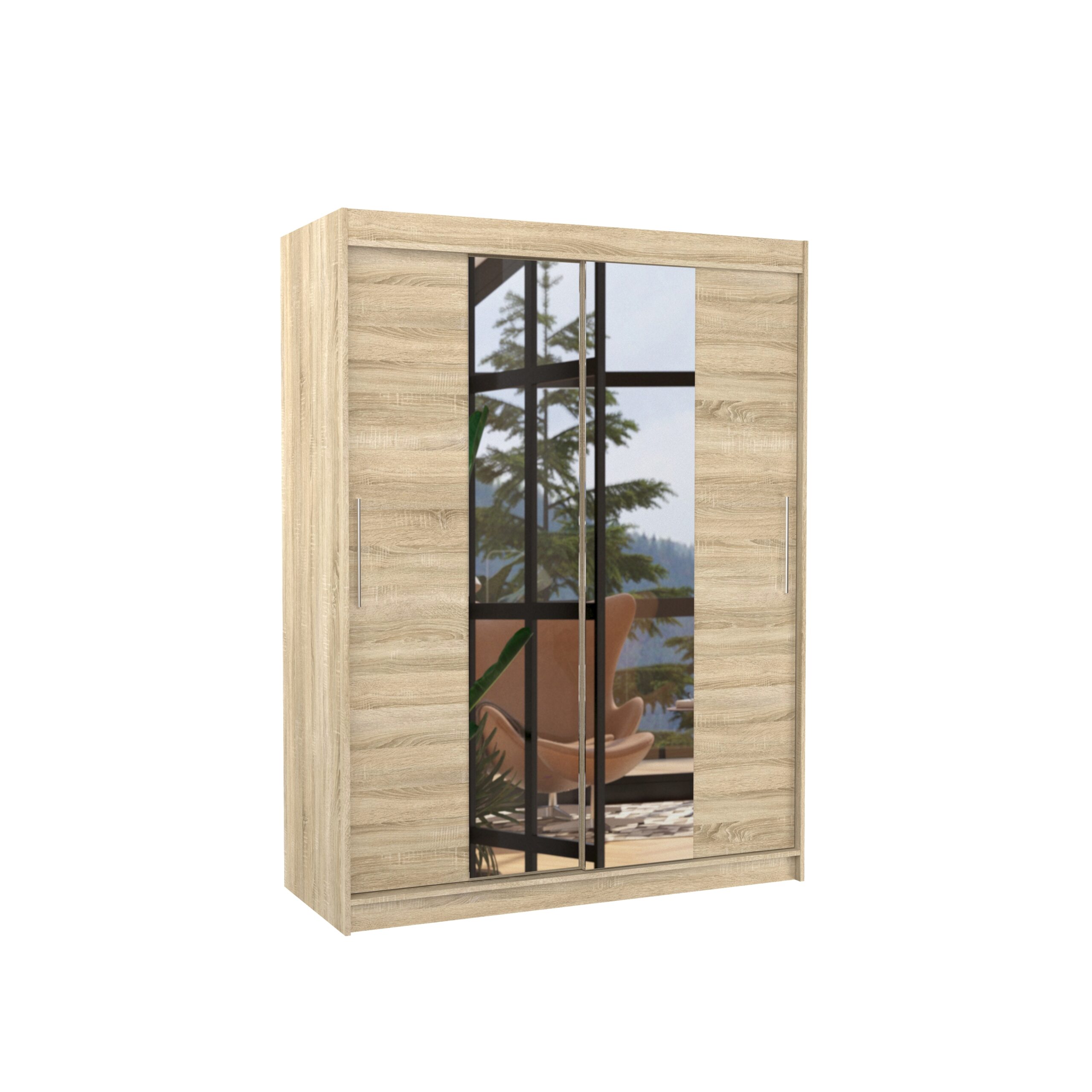 Leírás: Az INESS tolóajtós tükör szekrény ideális megoldás a térrendezéshez. A bútor tágas polcokkal és ruhásszekrénnyel van felszerelve, ahol ruhákat, öltönyöket, kültéri ruházatot vagy ingeket tárolhatsz. Mindkét ajtóra tükröket szereltek fel, amelyek optikailag nagyobbítják a teret. A tolóajtós kialakításnak köszönhetően nem kell plusz helyet szánnod az ajtónyitásra, így tökéletes megoldás kis szobákhoz vagy keskeny előszobákhoz.