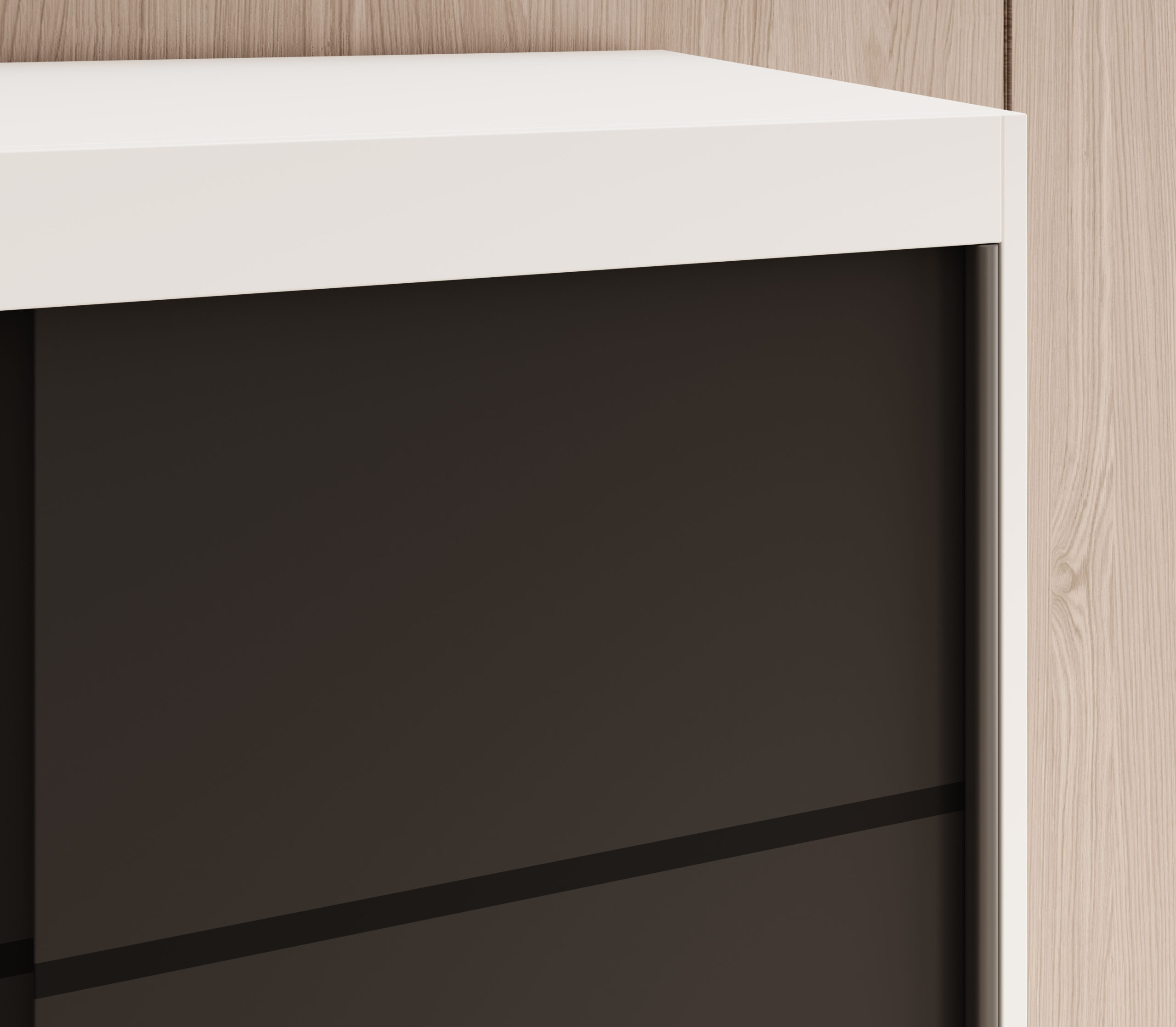 A tolóajtó-rendszernél a sín és a futómechanika kulcsfontosságú. A jó csúszás élménye nem csak „kényelmi extra”: ha simán fut az ajtó, kevésbé kopik, ritkábban szorul be, és hosszabb ideig marad csendes a használat. Ha kétajtós megoldást választasz, fontos, hogy a belső zónák elérését a frontok mozgása ne akadályozza – ezért praktikus a jól osztott belső tér.