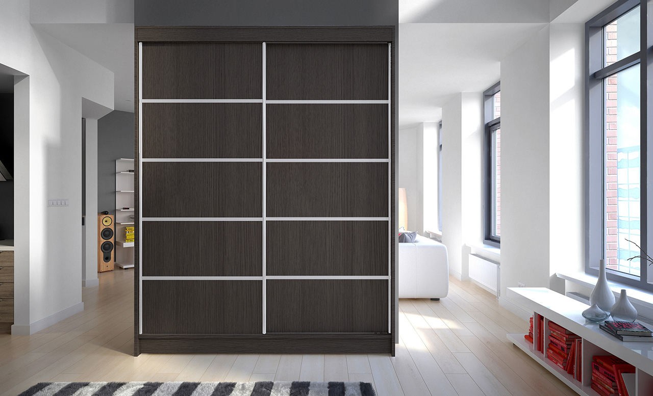 Leírás: A LUFT tolóajtós szekrény ideális megoldás a tér rendezésére. A bútor bőséges polcokkal és ruhásszekrénnyel van felszerelve, ahol ruhákat, öltönyöket, kültéri ruházatot vagy ingeket is felakaszthatsz. Az előlapon ezüst színű jellegzetes vízszintes csíkok találhatók, amelyek különleges stílust kölcsönöznek a bútornak. A tolóajtós kialakításnak köszönhetően nem szükséges extra helyet biztosítani az ajtók kinyitásához, így tökéletes megoldás kis szobákhoz vagy keskeny előszobákhoz.