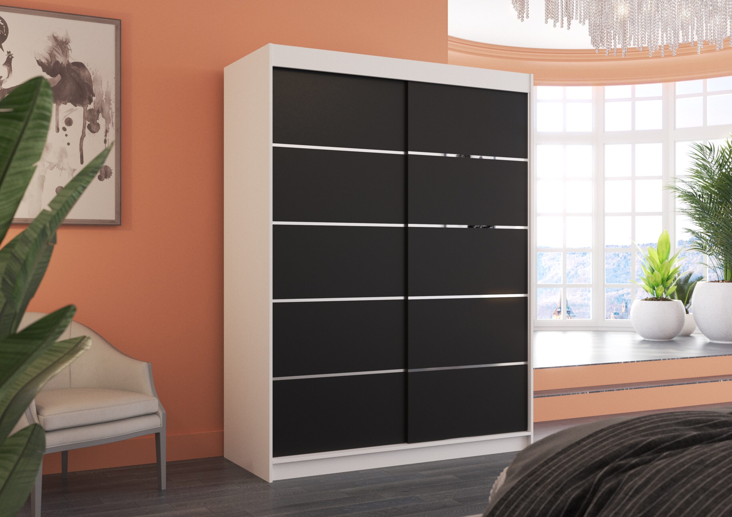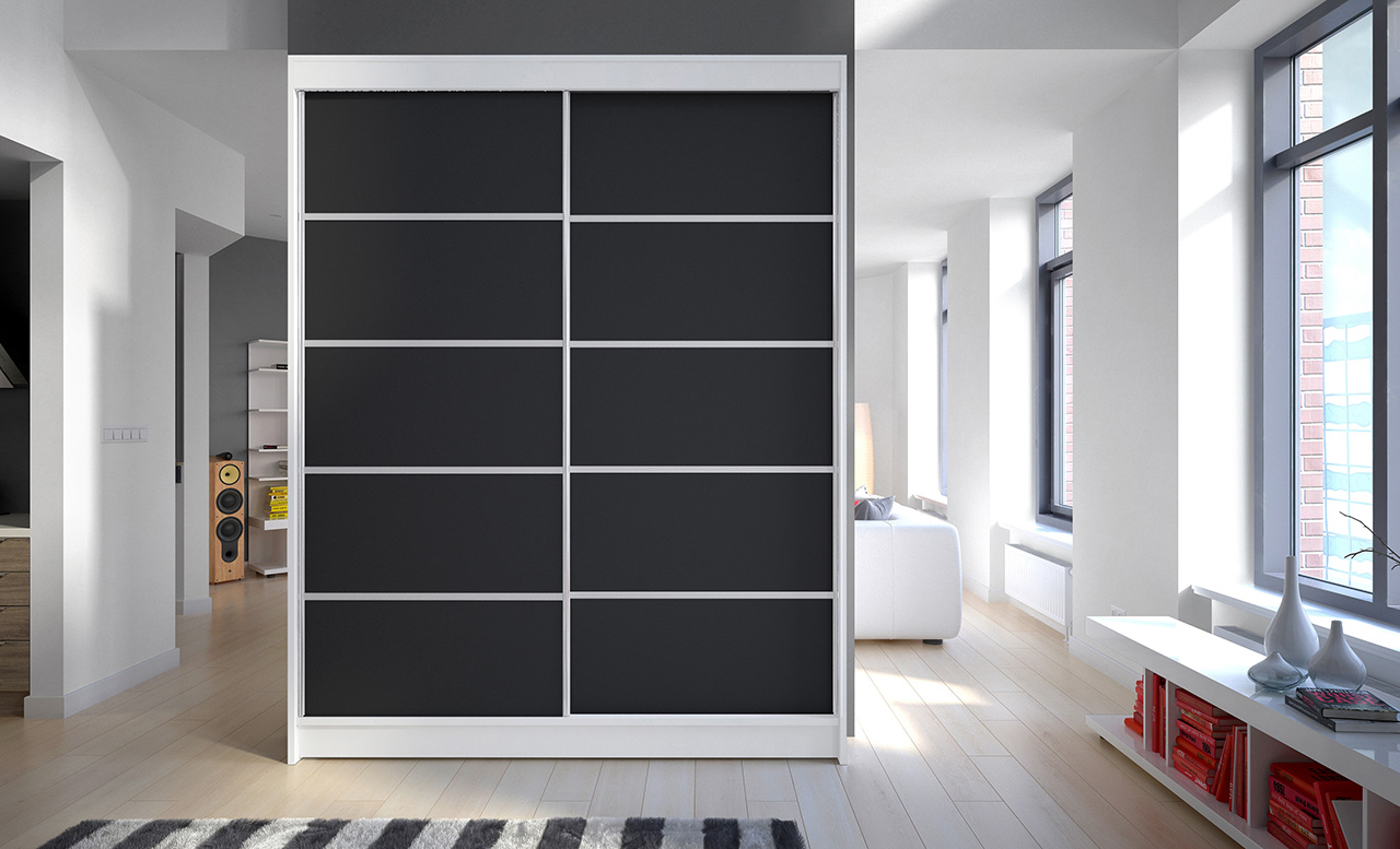 Leírás: A LUFT tolóajtós szekrény ideális megoldás a tér rendezésére. A bútor bőséges polcokkal és ruhásszekrénnyel van felszerelve, ahol ruhákat, öltönyöket, kültéri ruházatot vagy ingeket is felakaszthatsz. Az előlapon ezüst színű jellegzetes vízszintes csíkok találhatók, amelyek különleges stílust kölcsönöznek a bútornak. A tolóajtós kialakításnak köszönhetően nem szükséges extra helyet biztosítani az ajtók kinyitásához, így tökéletes megoldás kis szobákhoz vagy keskeny előszobákhoz.