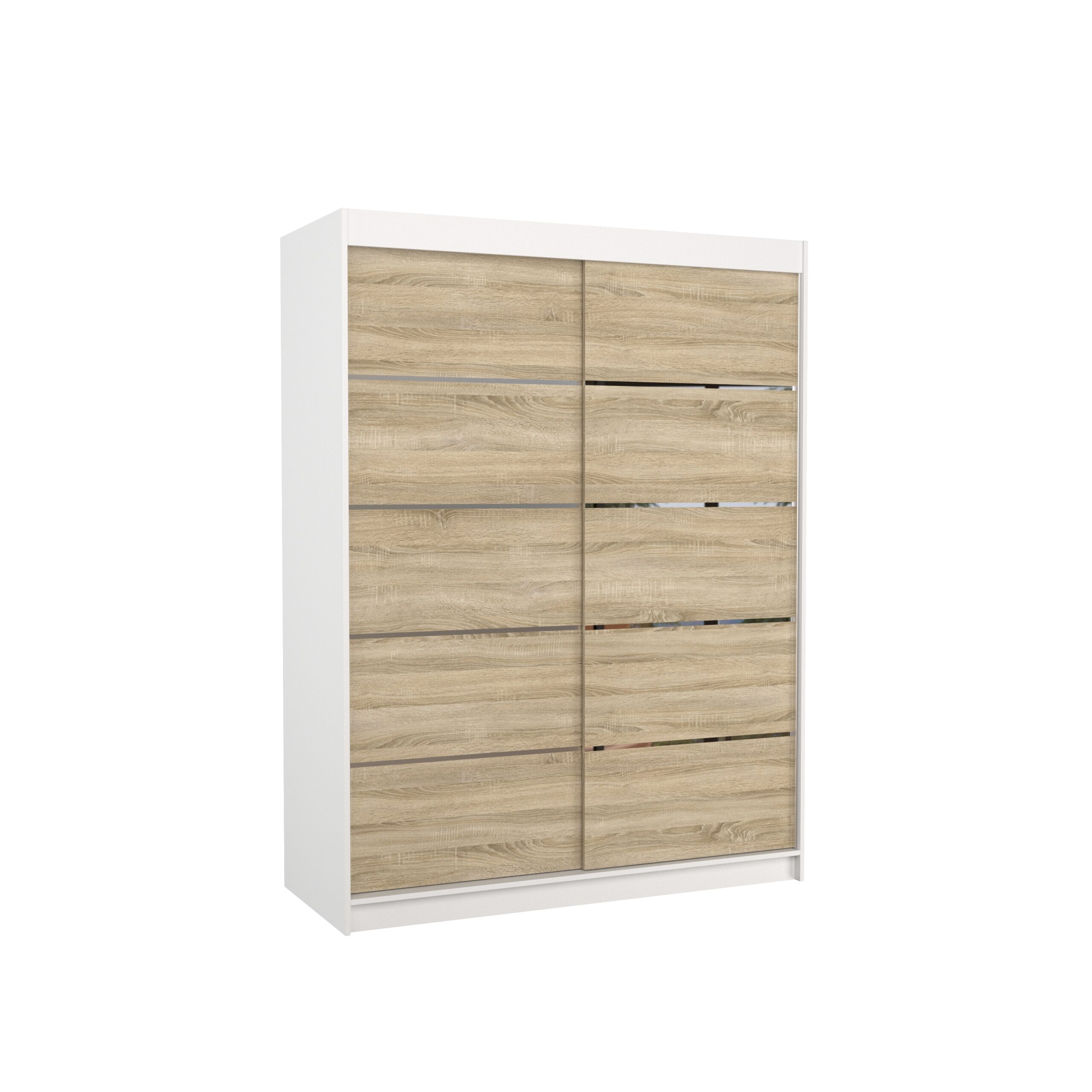 Leírás: A LUFT tolóajtós szekrény ideális megoldás a tér rendezésére. A bútor bőséges polcokkal és ruhásszekrénnyel van felszerelve, ahol ruhákat, öltönyöket, kültéri ruházatot vagy ingeket is felakaszthatsz. Az előlapon ezüst színű jellegzetes vízszintes csíkok találhatók, amelyek különleges stílust kölcsönöznek a bútornak. A tolóajtós kialakításnak köszönhetően nem szükséges extra helyet biztosítani az ajtók kinyitásához, így tökéletes megoldás kis szobákhoz vagy keskeny előszobákhoz.