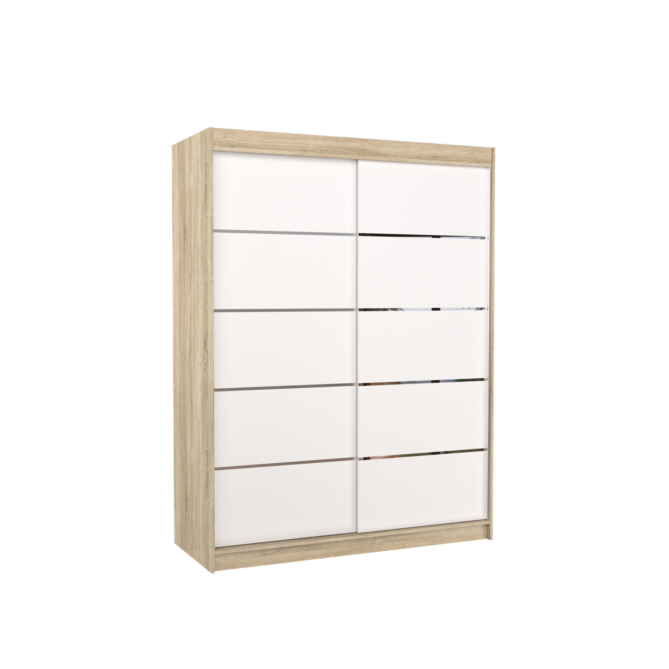 Leírás: A LUFT tolóajtós szekrény ideális megoldás a tér rendezésére. A bútor bőséges polcokkal és ruhásszekrénnyel van felszerelve, ahol ruhákat, öltönyöket, kültéri ruházatot vagy ingeket is felakaszthatsz. Az előlapon ezüst színű jellegzetes vízszintes csíkok találhatók, amelyek különleges stílust kölcsönöznek a bútornak. A tolóajtós kialakításnak köszönhetően nem szükséges extra helyet biztosítani az ajtók kinyitásához, így tökéletes megoldás kis szobákhoz vagy keskeny előszobákhoz.