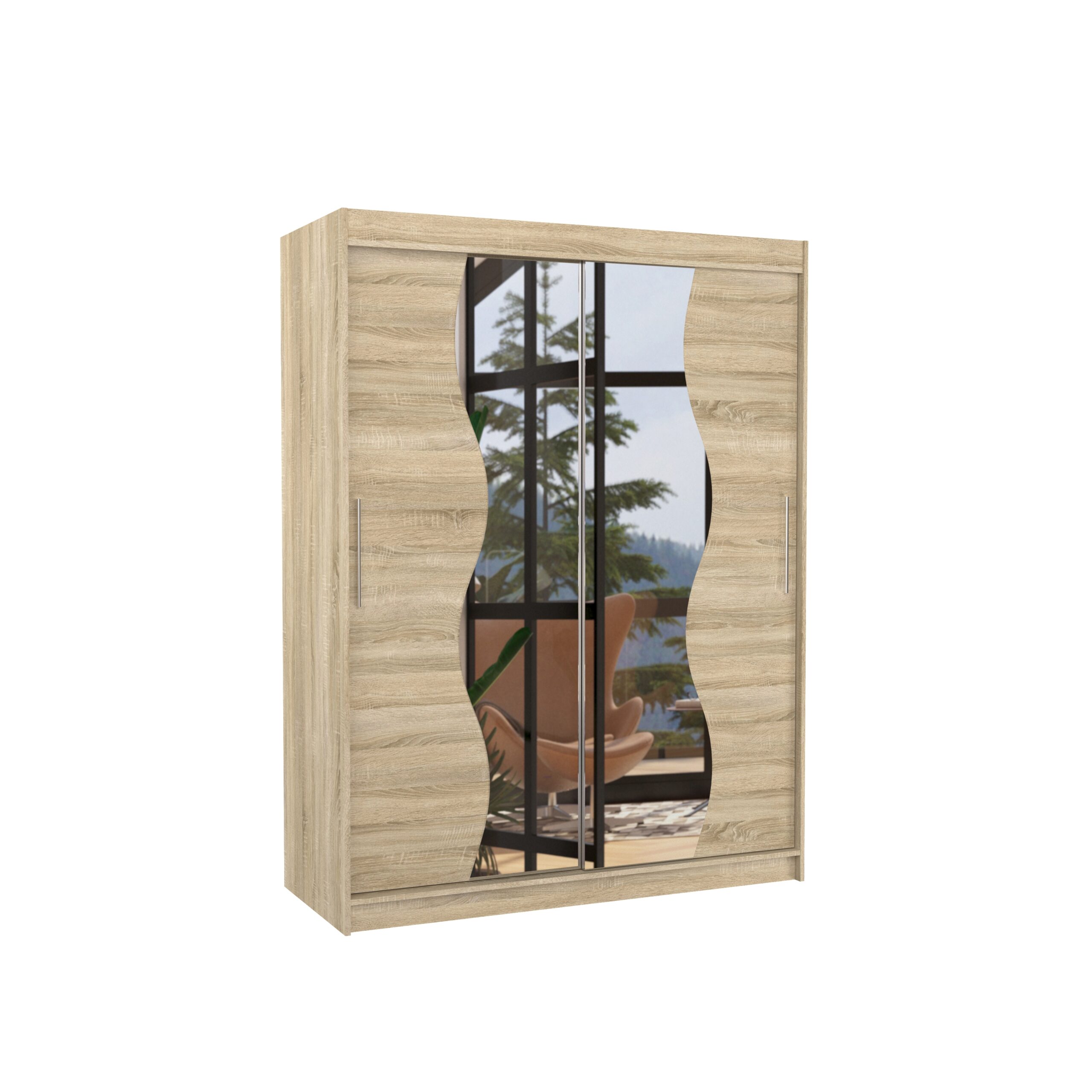 Leírás: A RENZO tolóajtós szekrény ideális megoldás a térrendezéshez. A bútor bőséges polcokkal és ruhásszekrénnyel van felszerelve, ahol ruhákat, öltönyöket, kültéri ruházatot vagy ingeket is felakaszthatsz. Az előlapon tükröt helyeztek el, amely optikailag nagyítja a teret. A tolóajtós kialakításnak köszönhetően nem szükséges extra helyet biztosítani az ajtók kinyitásához, így tökéletes megoldás kis szobákhoz vagy keskeny előszobákhoz.