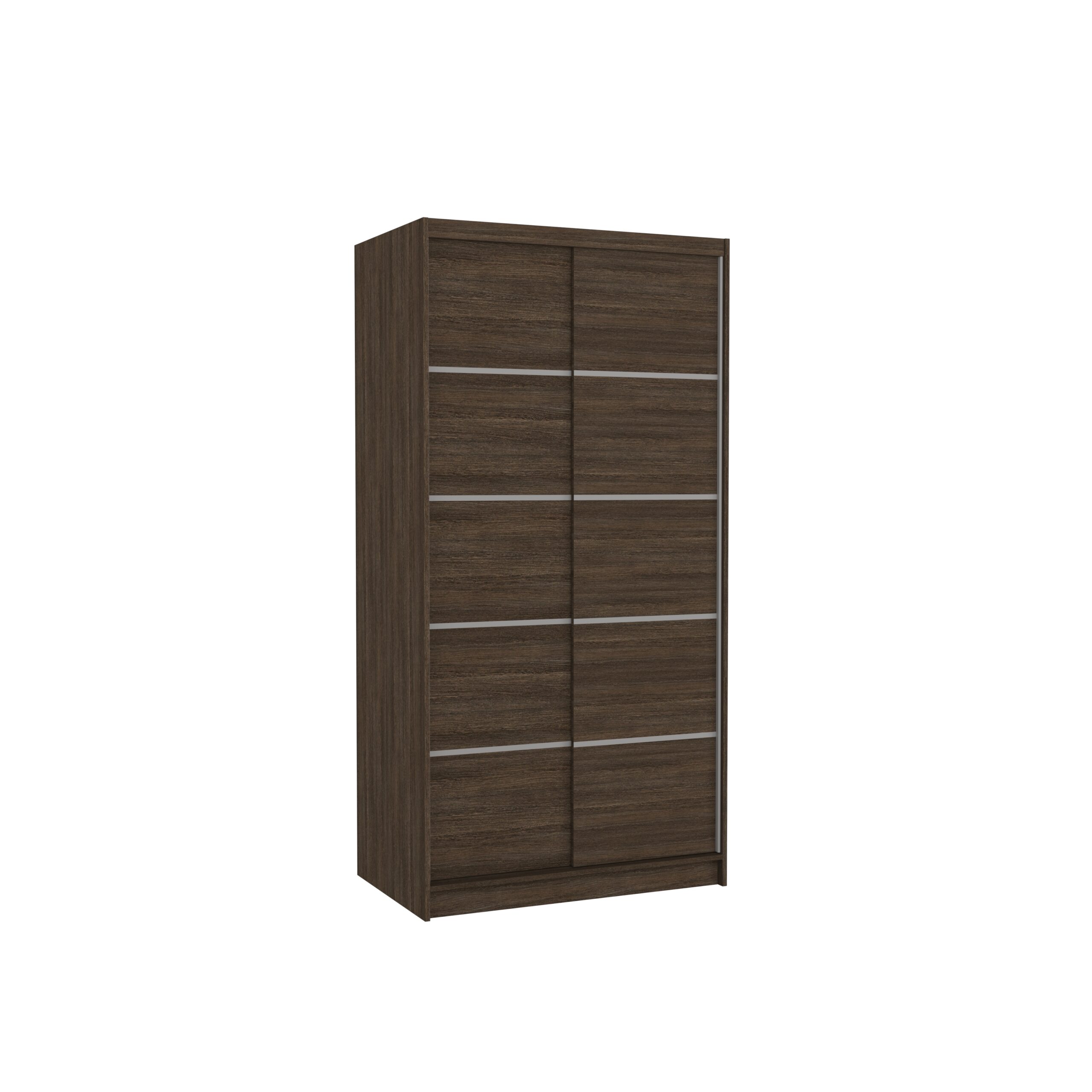 Leírás: A RIVA tolóajtós szekrény ideális megoldás a tér rendezésére. A bútor tágas polcokkal és ruhásszárítóval van felszerelve, ahol fel tudod akasztani ruháidat, öltönyeidet, külső ruházatodat vagy ingeidet. Az előlapján elhelyezett ezüstszínű díszes vízszintes csíkok egyedi stílust kölcsönöznek a bútornak. A tolóajtós kialakításnak köszönhetően nem szükséges külön helyet szánni az ajtónyitásra, így tökéletes megoldás kis szobák vagy keskeny előszobák számára.