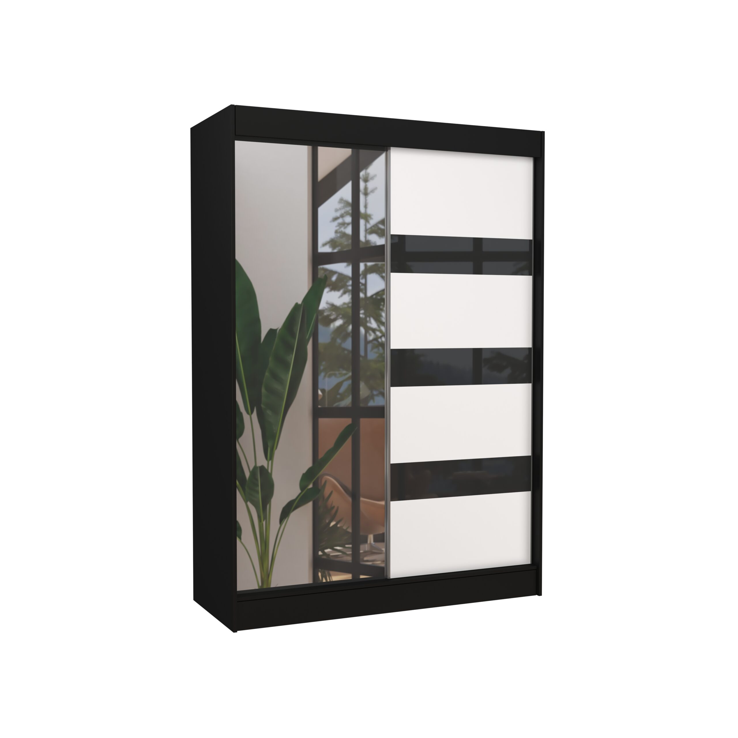 Tolóajtós gardrób Tolóajtós szekrény tükörrel és lacobellel TOURA 150 – Fekete