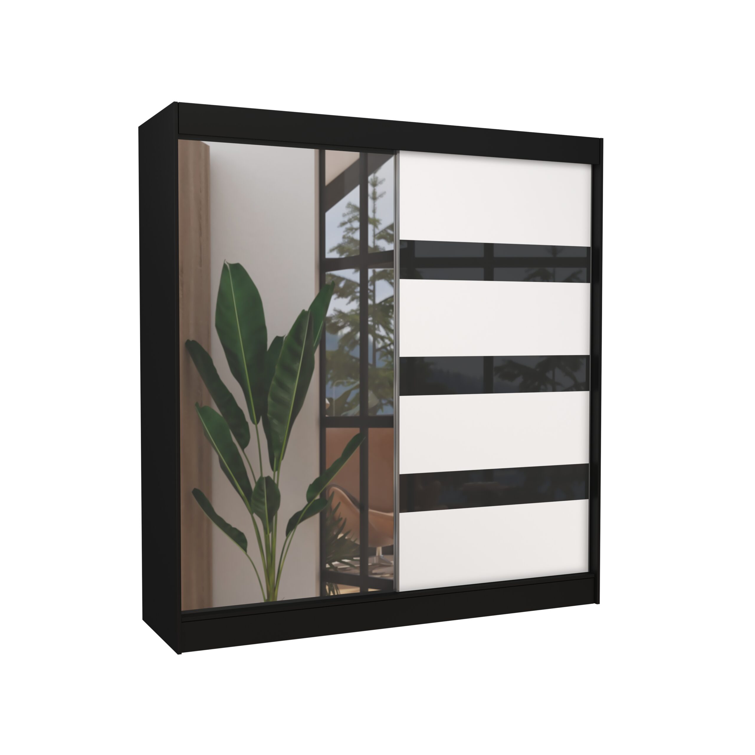 Tolóajtós gardrób Tolóajtós szekrény tükörrel és lacobellel TOURA 200 – Fekete