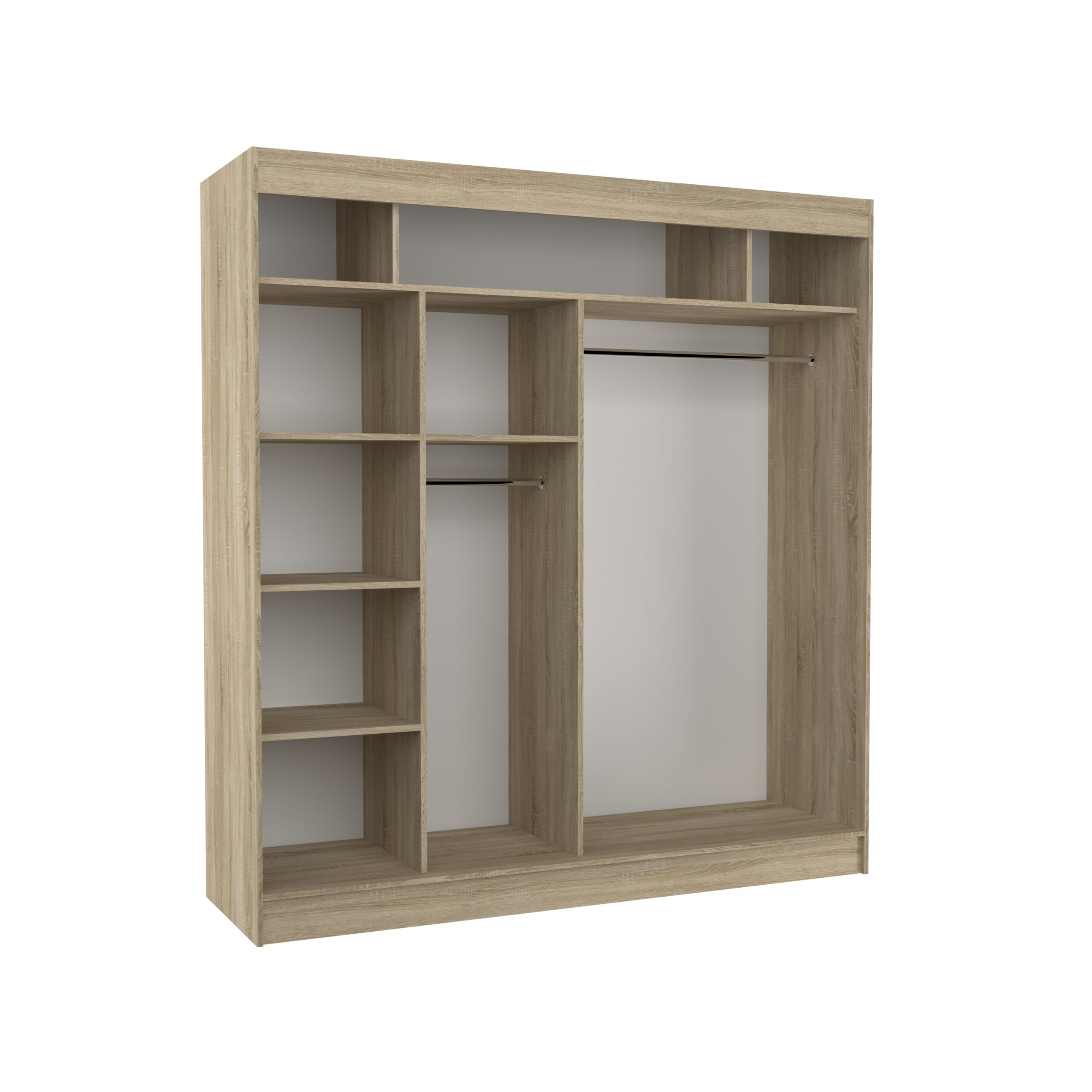 Leírás: A TOURA tolószekrény ideális megoldás a tér rendezésére. A bútor tágas polcokkal és egy rúddal van felszerelve, amelyre ruhákat, öltönyöket, felsőruházatot vagy ingeket akaszthat.