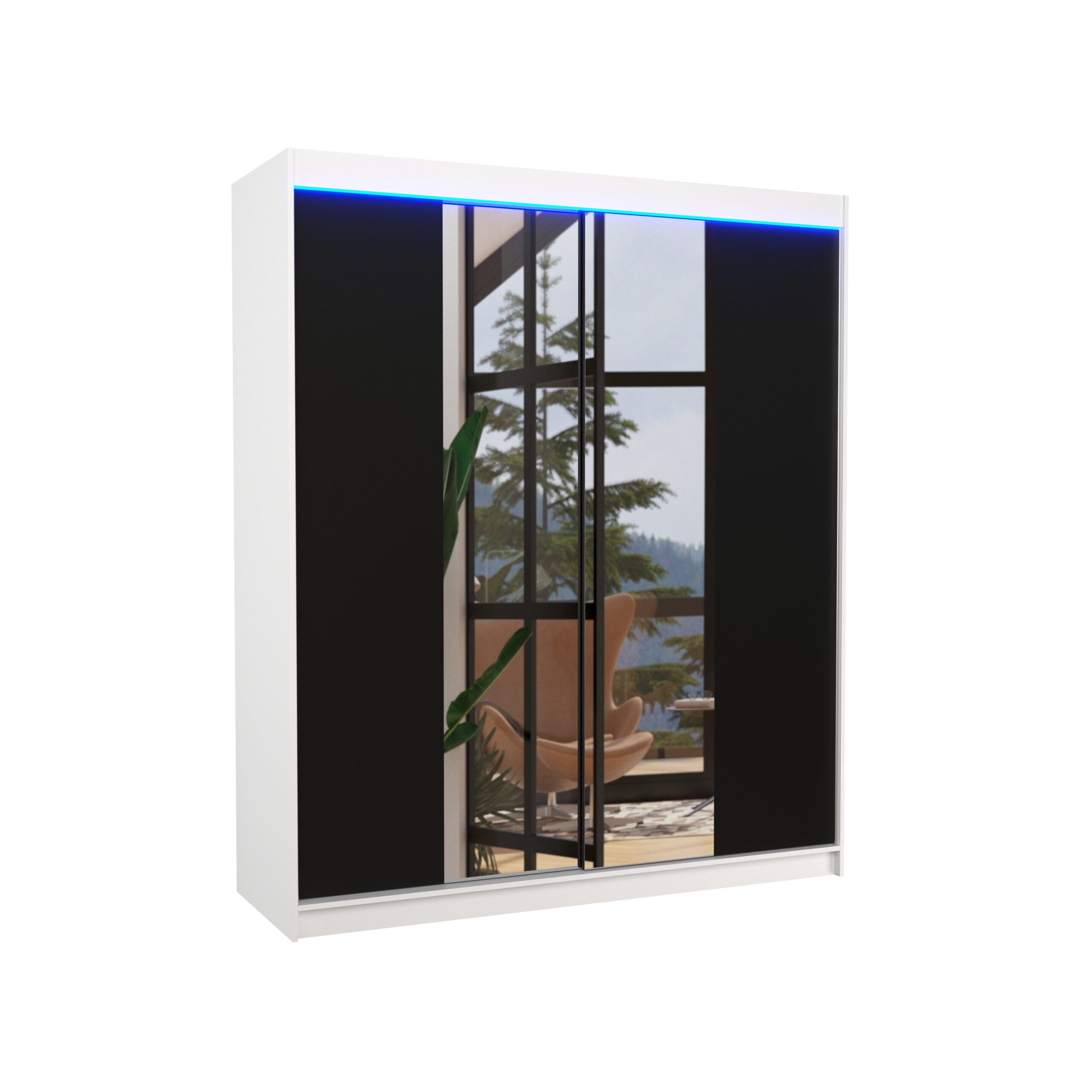 Tolóajtós gardrób LED tükrös tolóajtós szekrény DIEGO 250 – Fekete