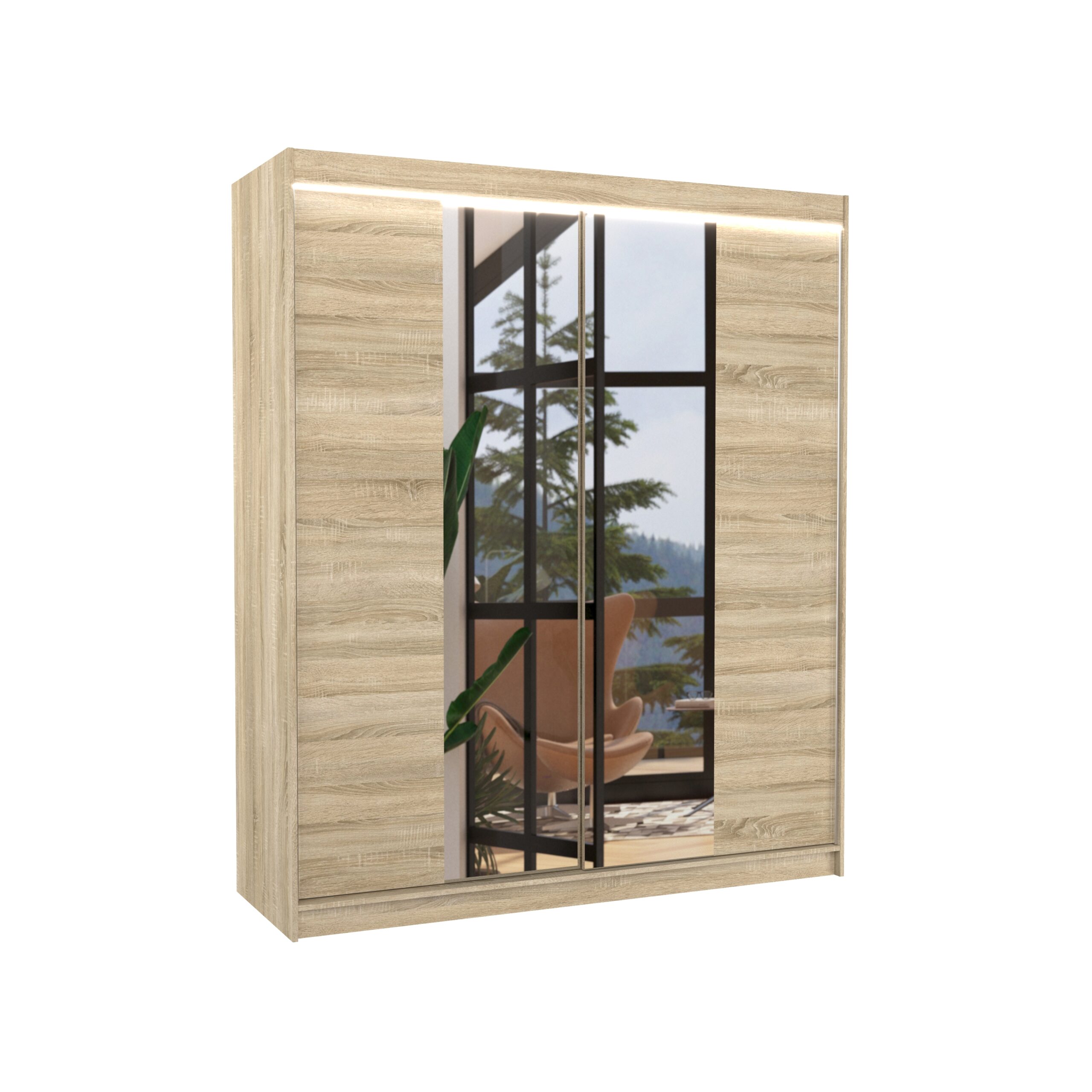 Tolóajtós gardrób LED tükrös tolóajtós szekrény CHESTER 250 – Sonoma