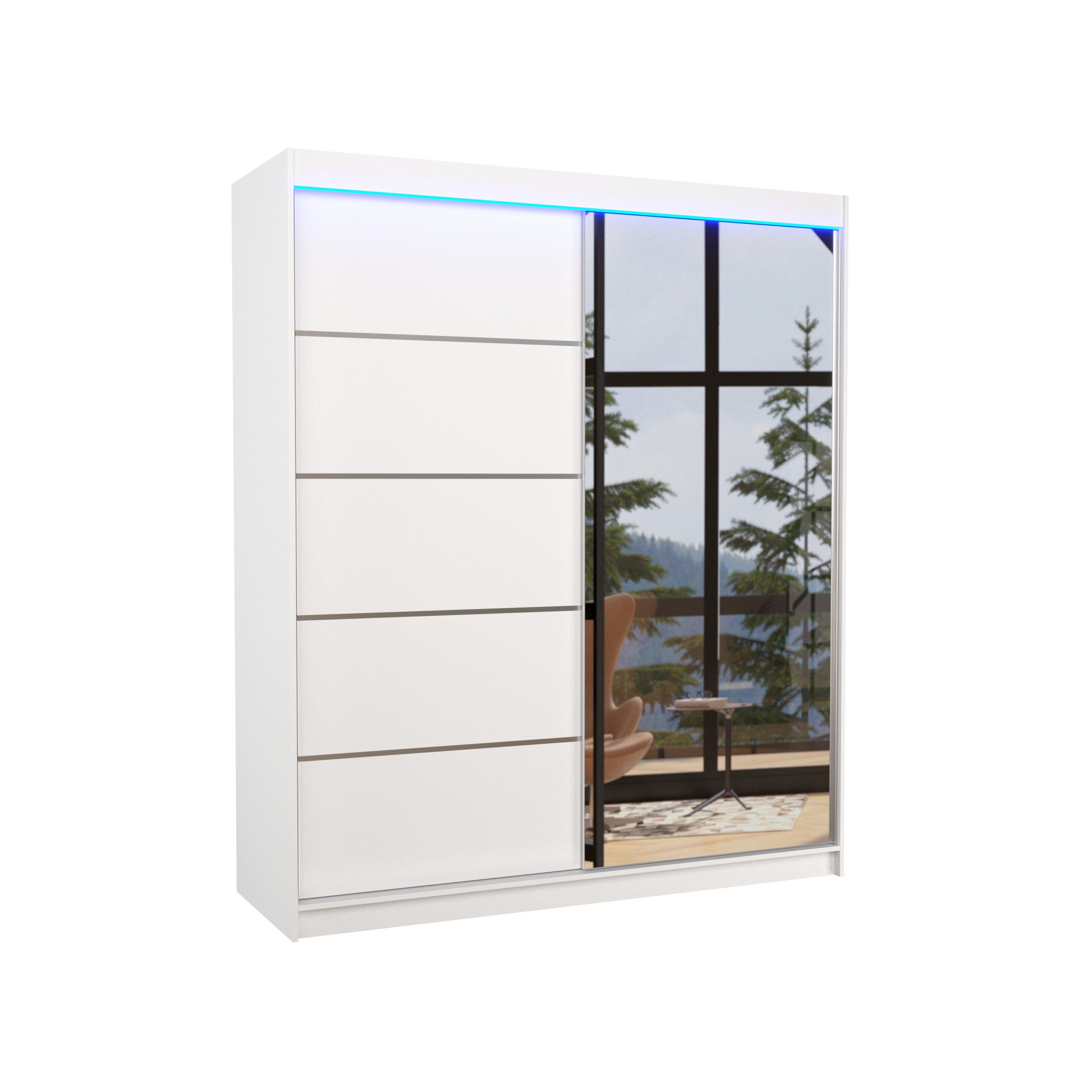 Tolóajtós gardrób Tolóajtós szekrény tükörrel és LED világítással CARO 180 – Fehér