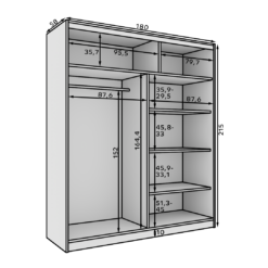 A megfelelő tolóajtós gardrób kiválasztásának első lépése a pontos mérés. Nem csak a fal szélességét érdemes lemérni, hanem a belmagasságot és a közlekedősávot is. A tolóajtós front miatt ugyan nem kell ajtónyitási ívvel számolni, de fontos, hogy a szekrény előtt kényelmesen lehessen állni, és legyen elég hely a rendezéshez, pakoláshoz.