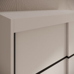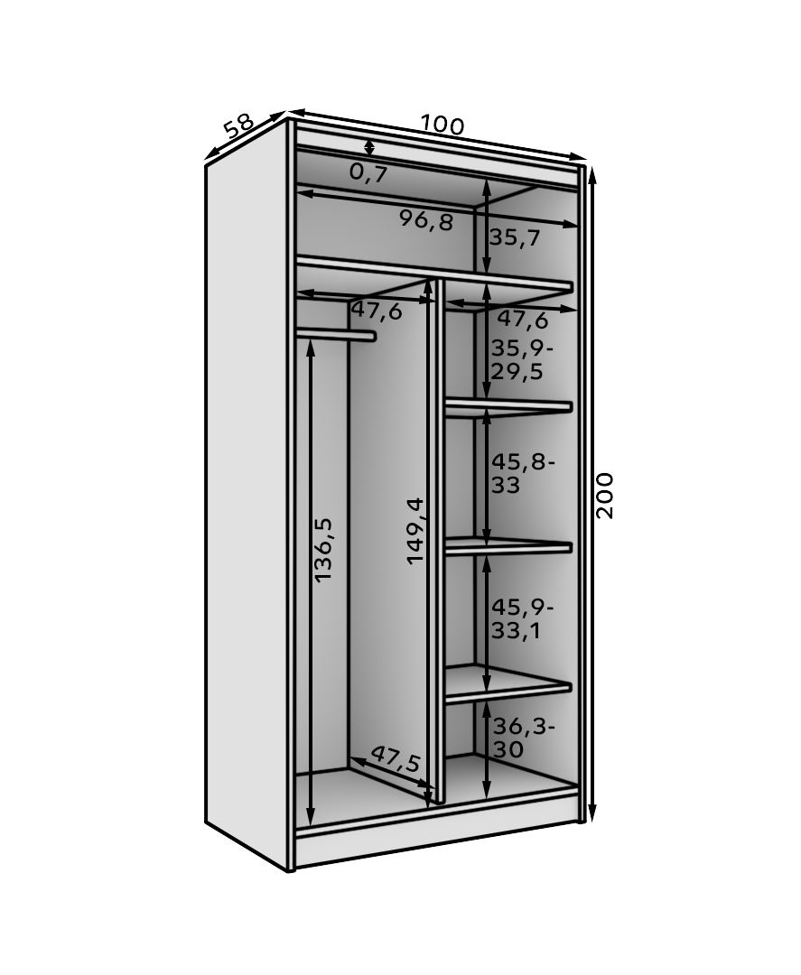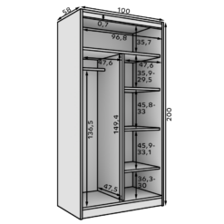 Leírás: A Verto 100 szekrény egy funkcionális és esztétikus bútordarab, amely tökéletesen illeszkedik bármilyen belső térbe. 16 mm vastag laminált lapból készült, így ellenáll a sérüléseknek és könnyen tisztán tartható. Modern, alumínium vezetősínekkel rendelkezik, amelyek biztosítják az ajtók sima és csendes mozgatását. Egyszerű kialakításának és masszív szerkezetének köszönhetően a Verto 100 szekrény ideális választás hálószobába, előszobába vagy irodába, ötvözve a funkcionalitást az elegáns megjelenéssel.