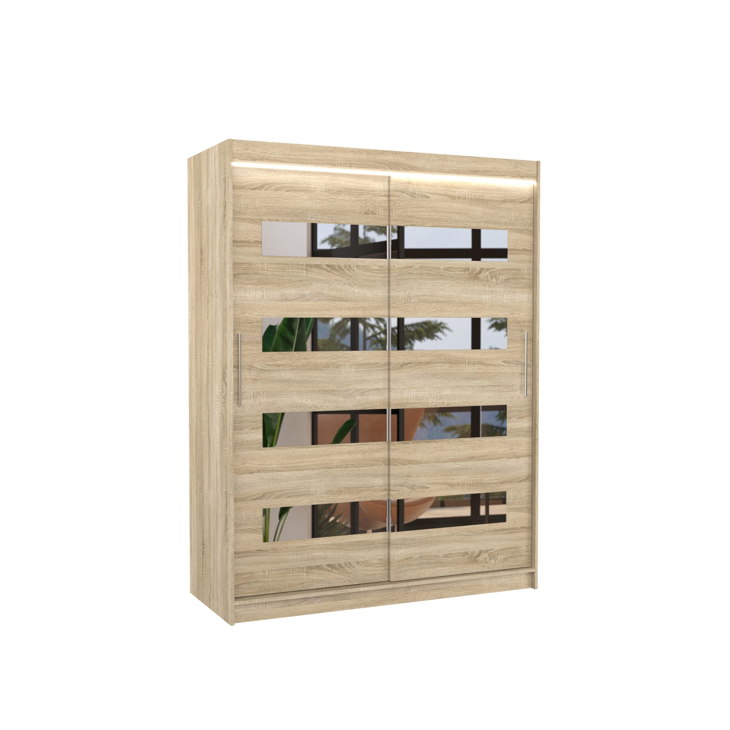 Tolóajtós gardrób Tükörrel és LED világítással ellátott tolóajtós szekrény BALTIC 150 – Sonoma