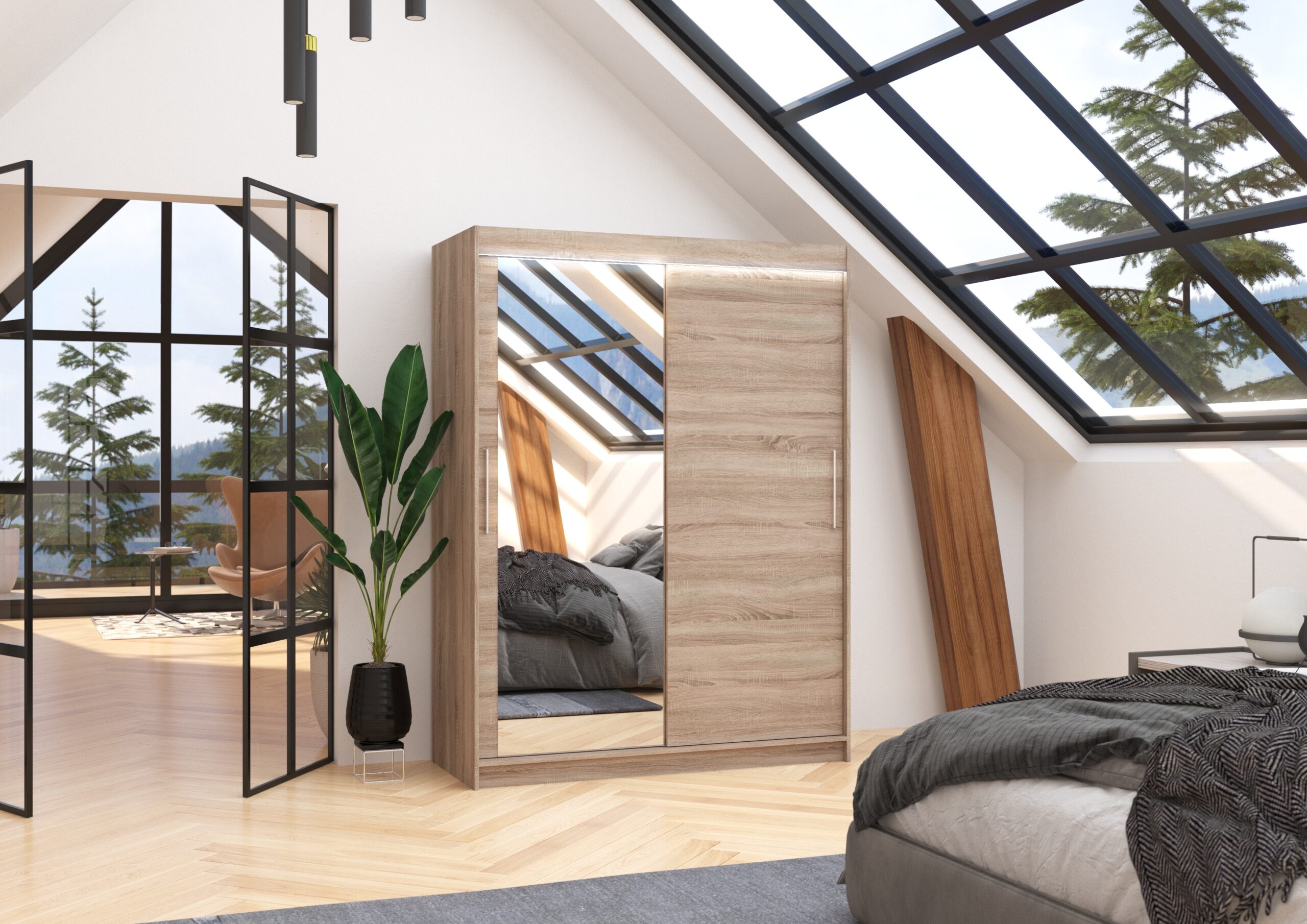 Tolóajtós gardrób LED tükrös tolóajtós szekrény CHESTER 250 – Sonoma