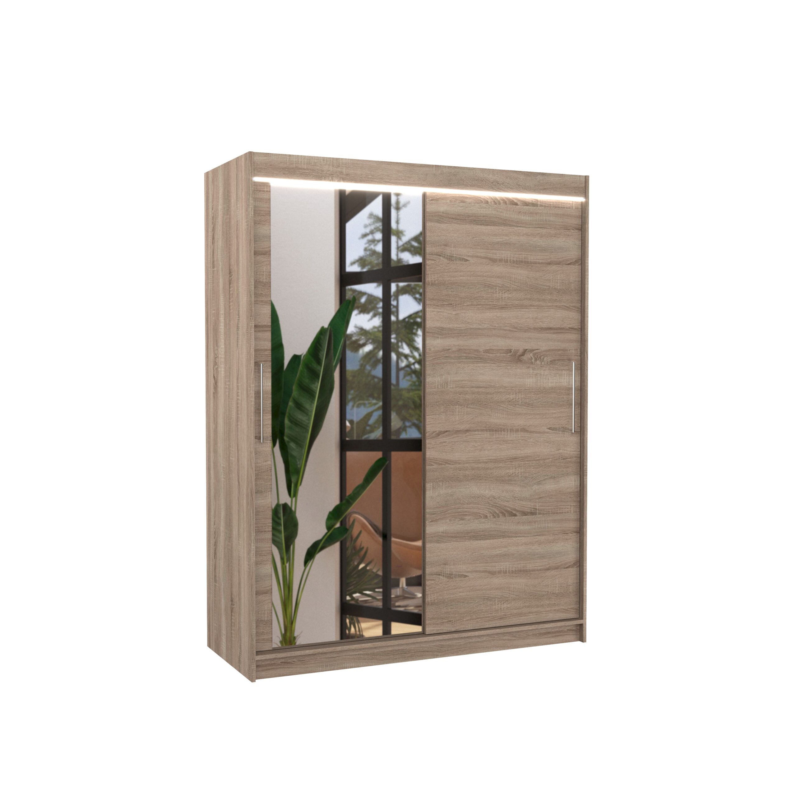 Tolóajtós gardrób LED tükrös tolóajtós szekrény DIEGO 250 – Sonoma