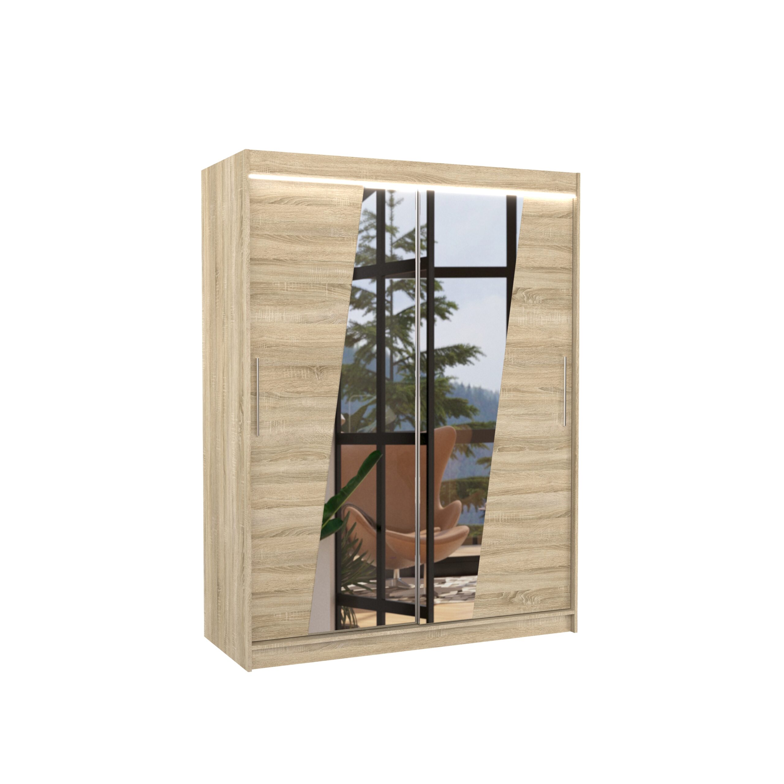 Tolóajtós gardrób Tükörrel és LED világítással ellátott tolóajtós szekrény BOLTON 150 – Sonoma