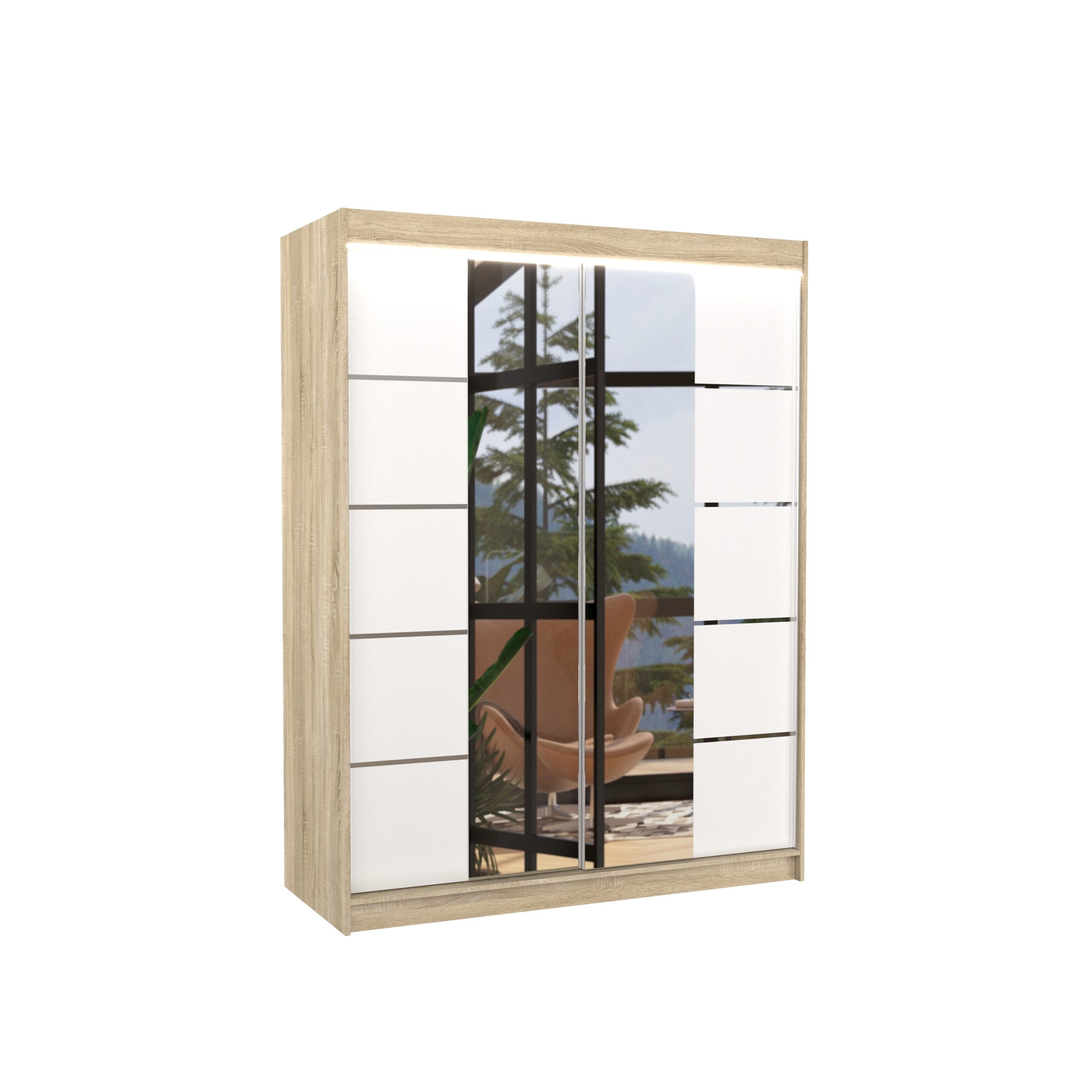 Tolóajtós gardrób Tükörrel és LED világítással ellátott tolóajtós szekrény NORDIC 150 – Sonoma
