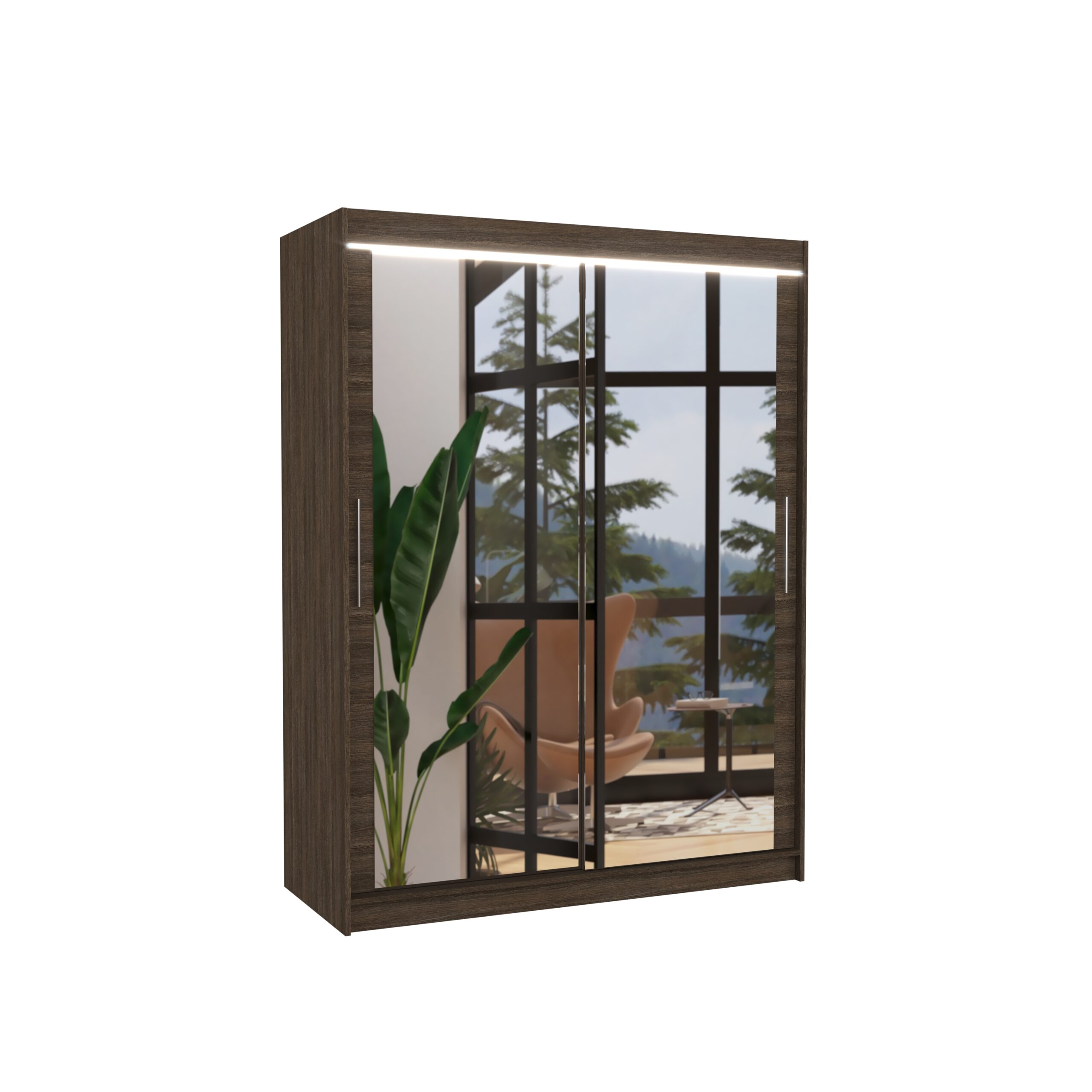 Tolóajtós gardrób Tükörrel és LED világítással ellátott tolóajtós szekrény PERMO 150 – Csoki