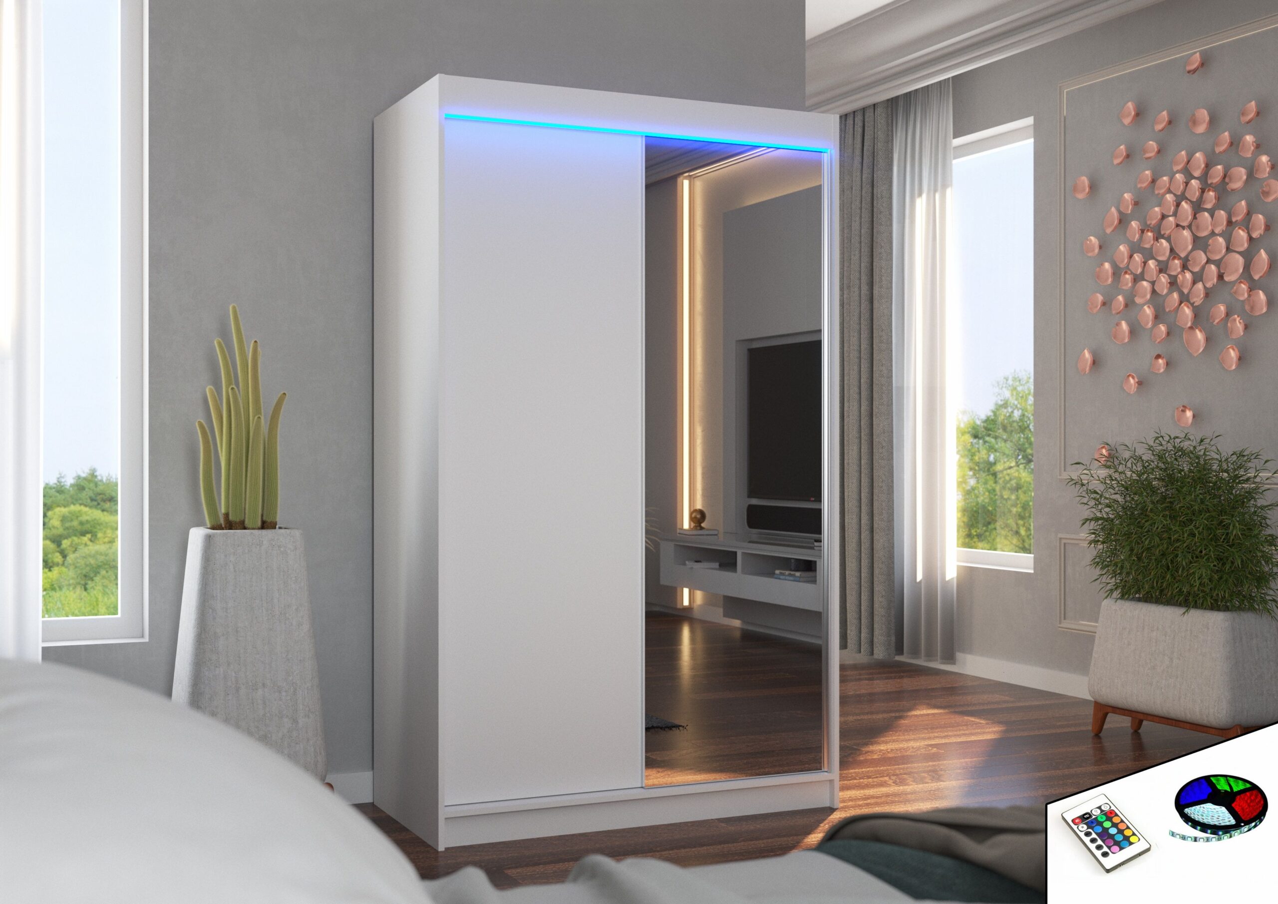 Tolóajtós gardrób Tükörrel és LED világítással ellátott tolóajtós szekrény REWENA 120 – Fehér