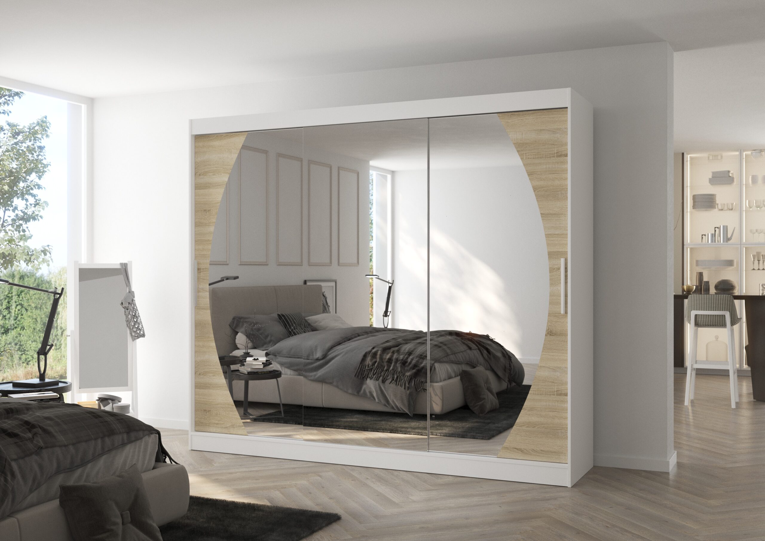 Tolóajtós gardrób LED tükrös tolóajtós szekrény DIEGO 250 – Sonoma