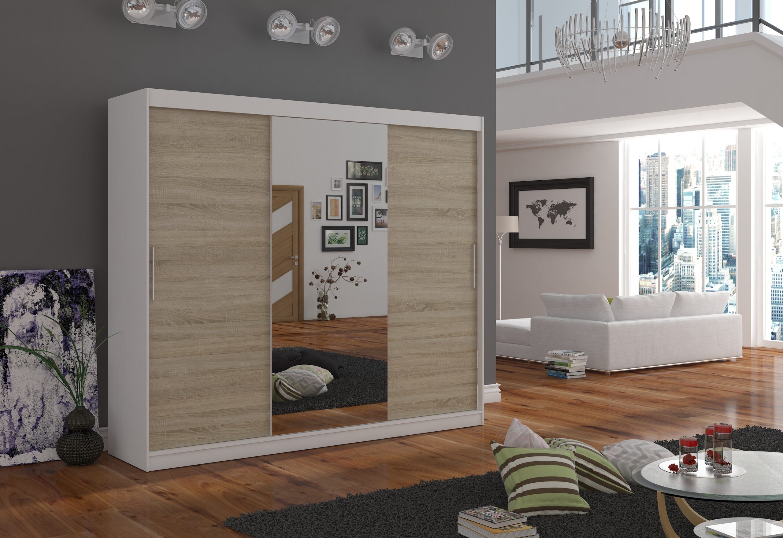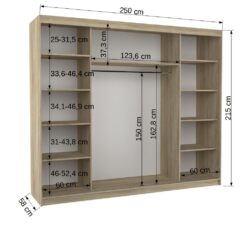 Tolóajtós gardrób LED tükrös tolóajtós szekrény DIEGO 250 – Sonoma