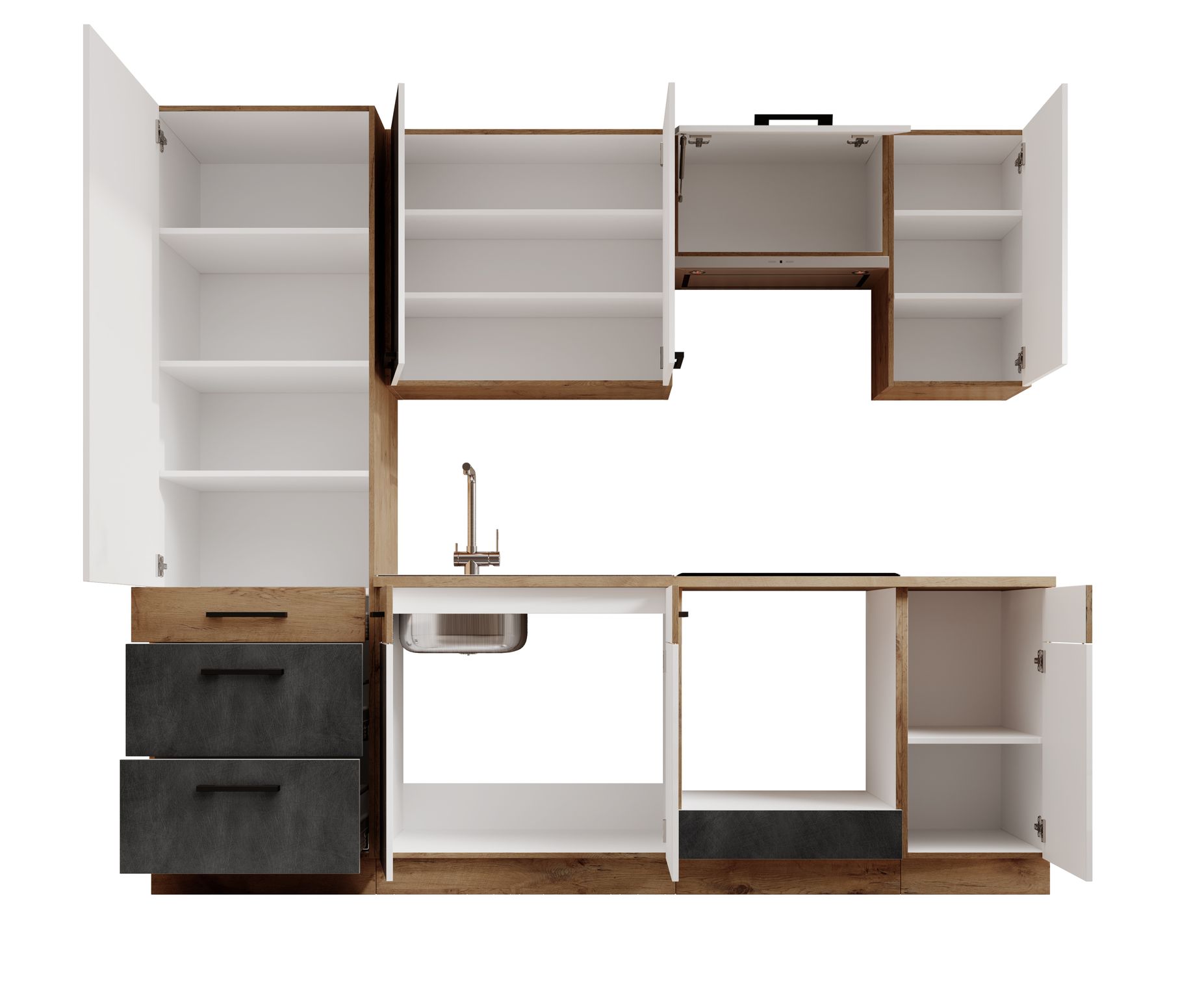 - Fiókos alsó elemek, hogy ne vesszen el semmi hátul