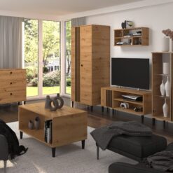 Egy vitrines szekrény akkor fog igazán jól működni a helyiségben, ha kapcsolódik a többi bútorhoz legalább egy elemében: színben, faerezetben, fogantyúformában vagy lábkialakításban. A természetes tölgy- és artisan jellegű felületek meleg, otthonos hangulatot adnak, míg a fekete részletek (keret, fogantyú, láb) modernítik az összképet. A világos, semleges tónusok – például fehér, bézs, homok árnyalatok – pedig akkor ideálisak, ha a cél a tágas, levegős nappaliérzet.