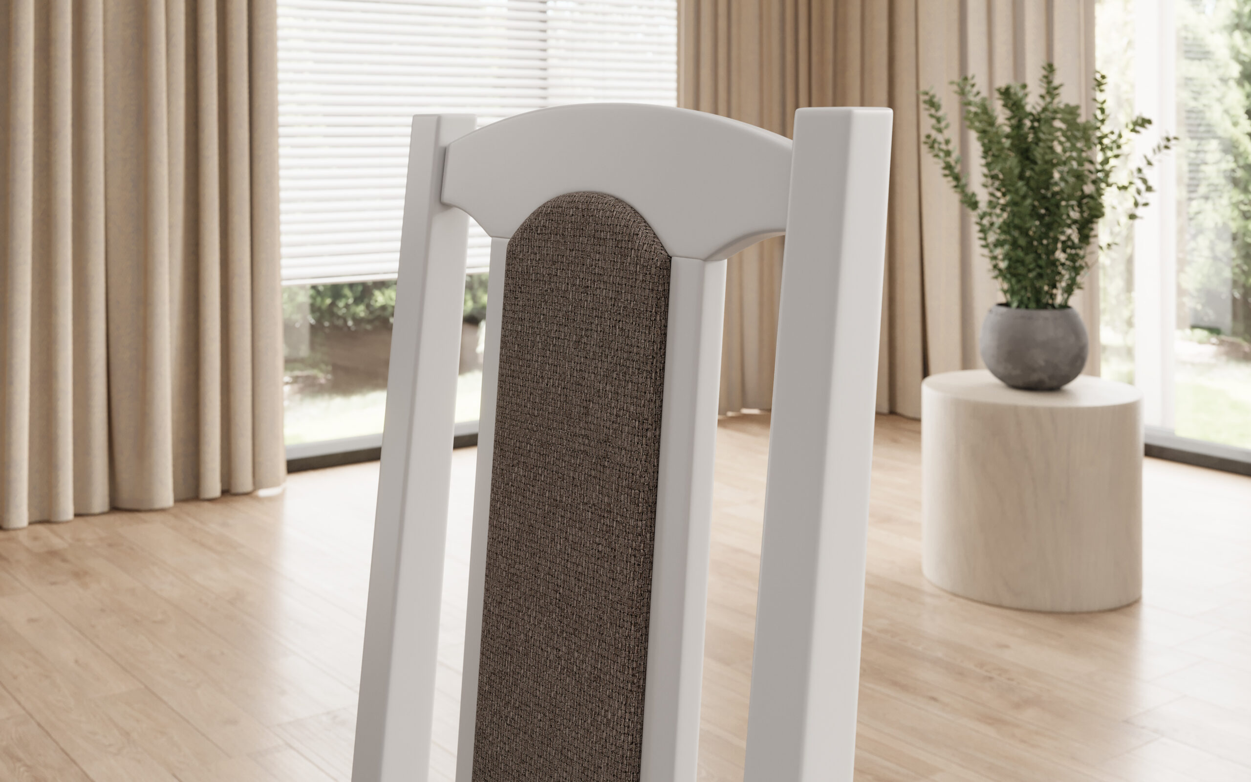 Leírás: A Vos VII szék azoknak szól, akik a klasszikus stílust kedvelik modern köntösben, és akik számára fontos a masszív kivitelezés és az elegáns kidolgozás. Jellegzetes, dekoratívan kialakított háttámlája a kárpitozott panellel egyedivé teszi a bútordarabot, és karakteres elemmé varázsolja bármelyik enteriőrben. A kárpitozott ülőfelület kényelmes használatot biztosít, míg a stabil, fa szerkezet hosszú éveken át tartó tartósságot garantál. A Vos VII tökéletesen megállja a helyét étkezőkben, nappalikban vagy olyan terekben, amelyek hagyományos vagy rusztikus stílusban készültek, ahol egyszerre fontos az esztétikum és a funkcionalitás. Ez a szék otthonosságot és eleganciát visz a térbe, miközben mindennapi használatban is teljes mértékben praktikus marad.