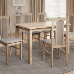 Leírás: A Vos VII szék azoknak szól, akik a klasszikus stílust kedvelik modern köntösben, és akik számára fontos a masszív kivitelezés és az elegáns kidolgozás. Jellegzetes, dekoratívan kialakított háttámlája a kárpitozott panellel egyedivé teszi a bútordarabot, és karakteres elemmé varázsolja bármelyik enteriőrben. A kárpitozott ülőfelület kényelmes használatot biztosít, míg a stabil, fa szerkezet hosszú éveken át tartó tartósságot garantál. A Vos VII tökéletesen megállja a helyét étkezőkben, nappalikban vagy olyan terekben, amelyek hagyományos vagy rusztikus stílusban készültek, ahol egyszerre fontos az esztétikum és a funkcionalitás. Ez a szék otthonosságot és eleganciát visz a térbe, miközben mindennapi használatban is teljes mértékben praktikus marad.